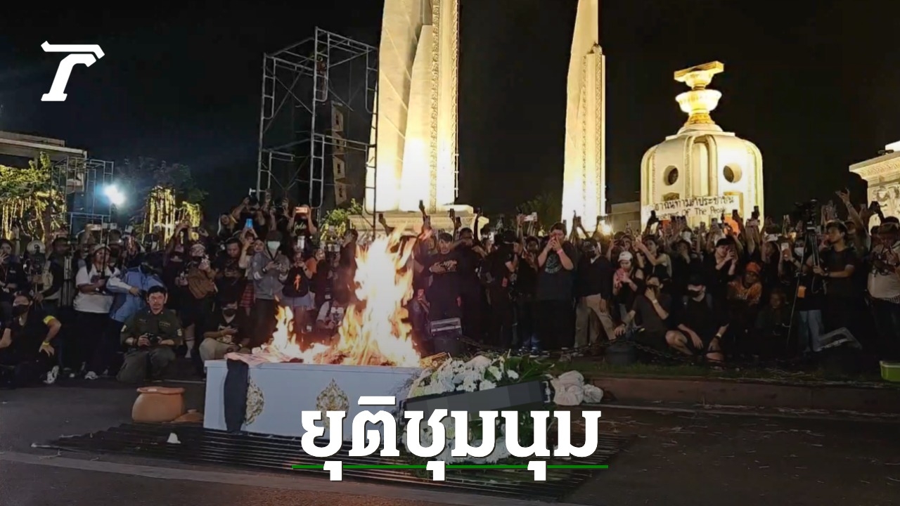 ก่อนจะพากันยืนชูสามนิ้วพร้อมพูดว่า "เผด็จการจงพินาศ ประชาราษฎรจงเจริญ" และแจกดอกไม้จันทน์ให้ทำพิธีเผาไฟ.