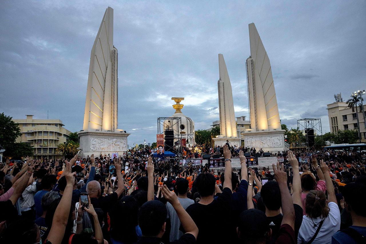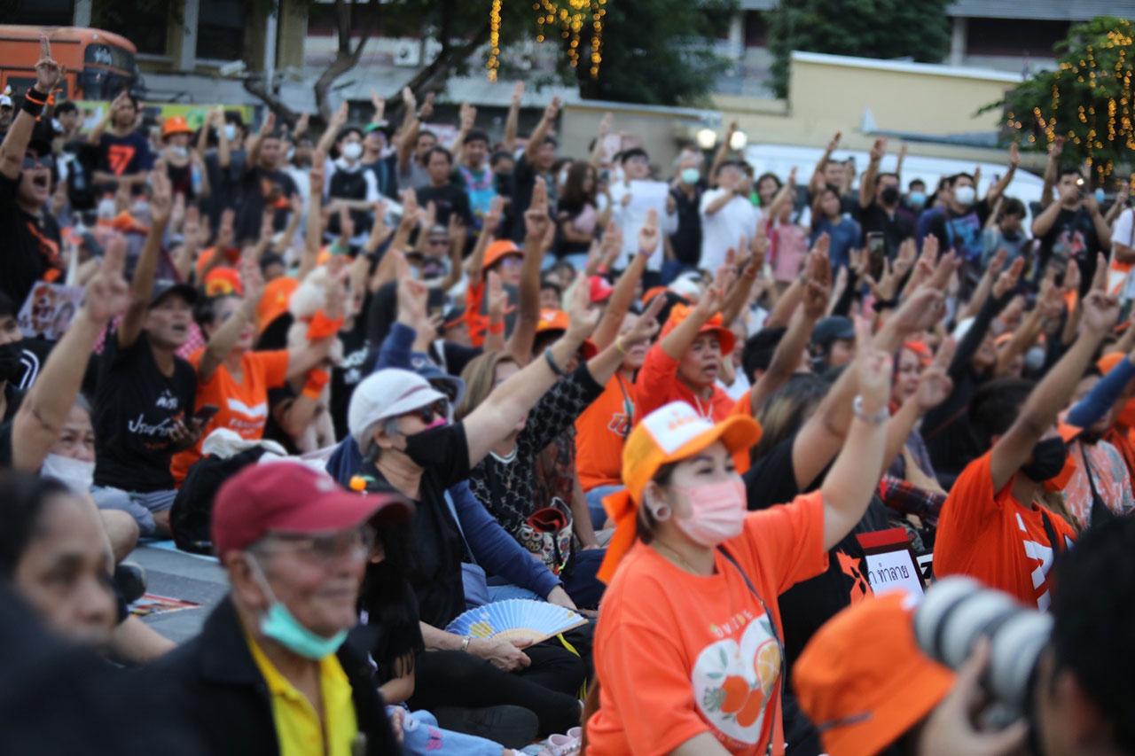 ต่อมาเวลา 20.00 น. นายอานนท์ นำภา ทนายจากศูนย์ทนายเพื่อสิทธิมนุษยชน แกนนำกลุ่มราษฎร ขึ้นปราศรัยบนเวทีว่า ถือว่าวันนี้เป็นวันแรกของการต่อสู้ครั้งใหม่เป็นยกสุดท้ายที่จะทำให้ไดโนเสาร์สูญพันธุ์ เรากำลังถูกผลักให้ต่อสู้กับบุคคลที่ครองอำนาจอย่างแท้จริง แม้เขาเหยียบเราจมดิน แต่เราเป็นเมล็ดพืช ยิ่งถูกเหยียบยิ่งงอกงาม คนรุ่นใหม่กำลังเติบโตขึ้นมาเป็นระนาบ ปีนี้พรรค ก.ก. 14 ล้านเสียง อีก 4 ปี 20 ล้านเสียงแน่ ถ้าเราไม่ออกมาต่อสู้พรรค ก.ก. โดนยุบร้อยเปอร์เซ็นต์ เขาไม่ได้กลัวแค่แก้ไข มาตรา 112 แต่กลัวจะไปเปลี่ยนแปลงโครงสร้างต่างๆในสังคม ต่อไปนี้จะนัดให้พี่น้องต่างจังหวัดเข้ามานอนค้างที่ กทม. ร่วมชุมนุมกับเรา วันไหนพร้อมไปหน้าทำเนียบแน่นอน ล่าสุดได้ข่าวจะมีการจัดชุมนุมของนักเรียนนิสิตนักศึกษาตามจังหวัดต่างๆ และจะลุกลามไปทั่วประเทศ จากนี้ขอให้กลับบ้านไปชวนคนใกล้ตัวมาร่วม คนเป็นแสนเมื่อไหร่เผด็จการอยู่ไม่ได้ทันที