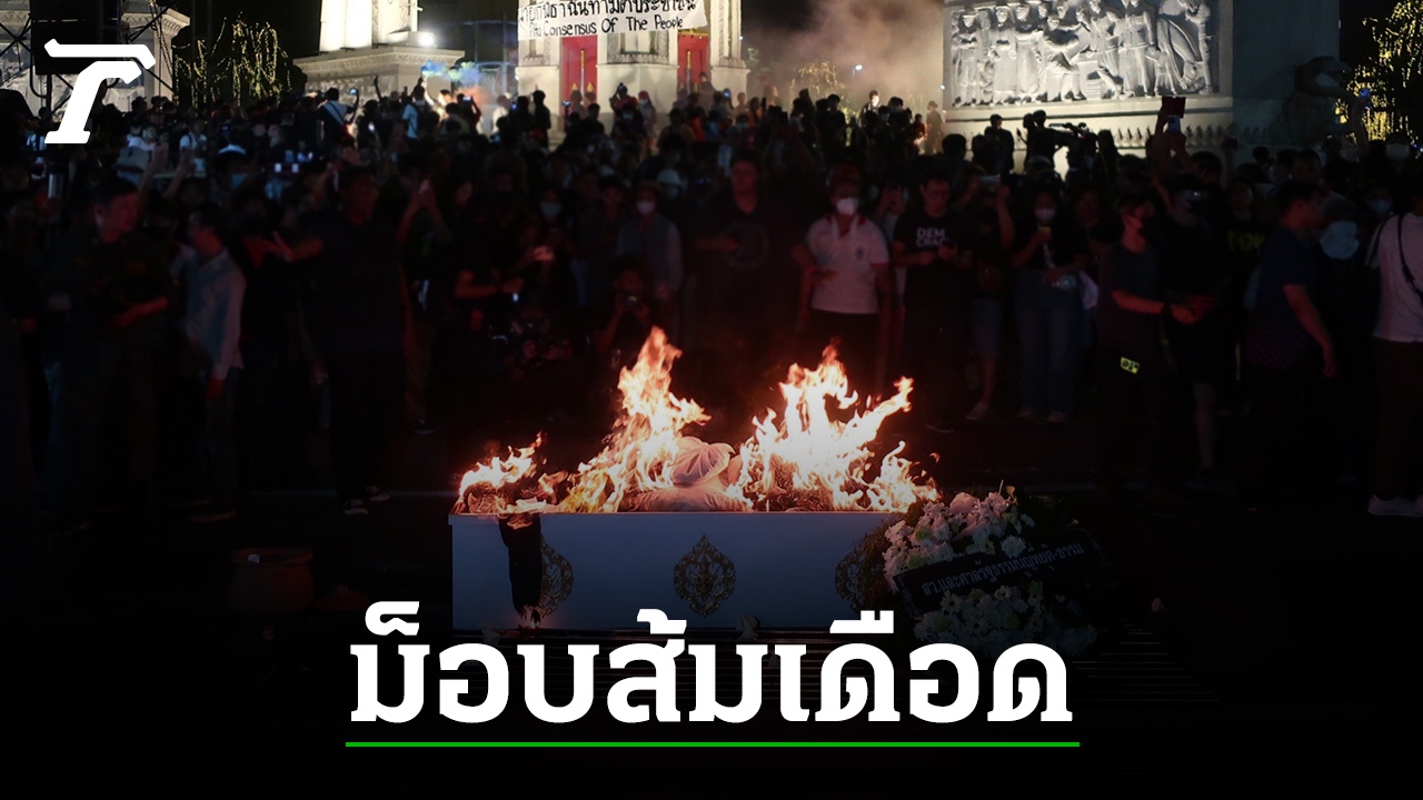 ม็อบส้มเดือดศาล รธน.สั่ง “พิธา” หยุดทำหน้าที่ สส. แถมวืดเก้าอี้นายกฯ เคลื่อนตัว จากที่ชุมนุมประชิดสภาปีนประตูหวังบุกเข้าหา สว. “ทวี ไกรคุปต์” โผล่ให้กำลังใจเชื่อก้าวไกลไม่ล้มสถาบัน ด้อมส้มสูงวัยผิดหวังร่ำไห้ลมจับ ก่นด่า “เสียงของเราถูกปล้นไปอีกแล้ว” 4 เยาวชนโชว์พลังปีนตู้คอนเทนเนอร์ต้าน สว. “สส.โตโต้” นำทีมอ้อนเลือกตั้งครั้งหน้าขอก้าวไกล 300 เสียง “สมยศ” ระดมพลยึดอนุสาวรีย์ประชาธิปไตย จัดพิธีฌาปนกิจ สว. ปลุกประชาชนสู้ทุกรูปแบบ กดกระดิ่งยันหน้า บ้าน สว.ไร้สำนึก นัดแต่งดำไว้อาลัยประชาธิปไตยไทยทั้งเดือน ก.ค.