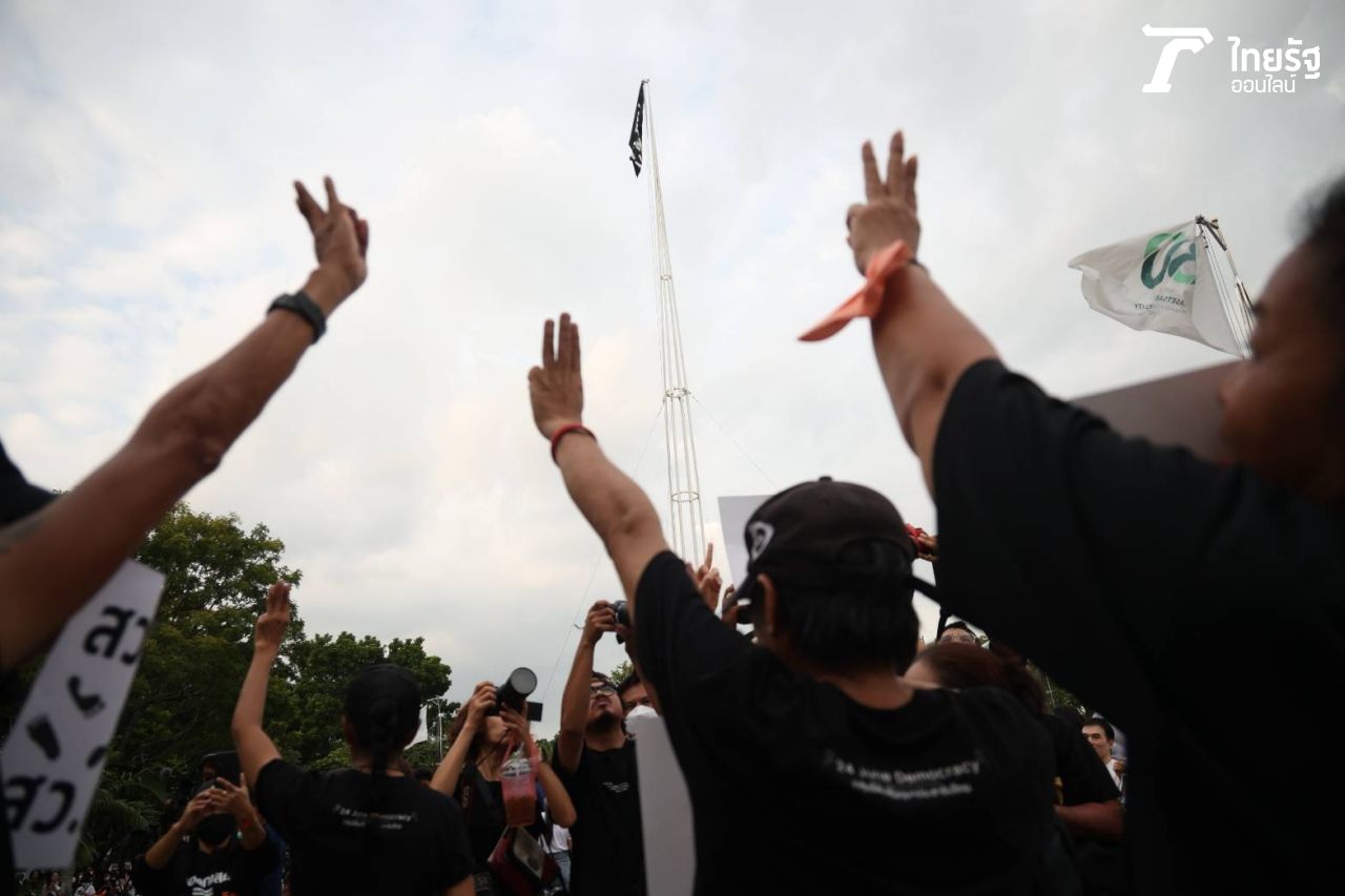 ม็อบนิสิต ม.เกษตรฯ ชักธงดำข้อความ Respect My Vote อาลัยประชาธิปไตยที่ถูกย่ำ “อานนท์” หวังเห็นมวลชนออกมาร่วมมากขึ้นเรื่อยๆ เผย จ่อนัดชุมนุมทุกสัปดาห์ ฝากเพื่อไทย-ก้าวไกล จับมือให้แน่น