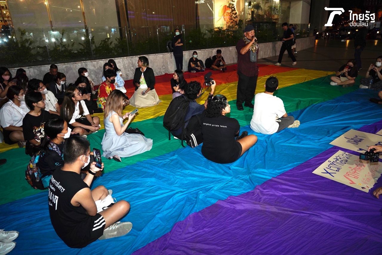 ขณะเดียวกัน ผู้สื่อข่าวรายงานว่าช่วงค่ำของวันนี้ บริเวณหน้าหอศิลปวัฒนธรรมแห่งกรุงเทพมหานคร แยกปทุมวัน กลุ่มเฟมินิสต์ปลดแอก และเครือข่ายนักศึกษาจำนวนหนึ่ง นำโดย น.ส.ชุมาพร แต่งเกลี้ยง แกนนำกลุ่มเฟมินิสต์ปลดแอก จัดกิจกรรมแฟลชม็อบ พูด-ร้อง-เต้น บนธงสายรุ้ง ส่งเสียงเรียกร้องให้ สว. ฟังเสียงประชาชน หลังจาก สว. และ สส.ฝ่ายอนุรักษนิยม ไม่โหวตให้ นายพิธา เป็นนายกรัฐมนตรี ตามที่ประชาชนคนไทย 14 ล้านเสียงลงคะแนนเลือกตั้งให้พรรคก้าวไกลมาเป็นรัฐบาล โดยบรรยากาศเป็นอย่างคึกคัก ได้รับความสนใจประชาชนที่สัญจรผ่านไปมา และมีหลายคนร่วมแสดงความคิดเห็นไม่พอใจ สว.เสียงข้างมากอย่างดุเดือด