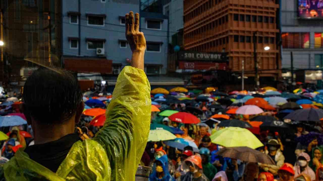 วันที่ 23 ก.ค. 66 ผู้สื่อข่าวรายงานบรรยากาศการชุมนุมของม็อบที่บริเวณแยกอโศก บนเวทีปราศรัยของกลุ่มผู้ชุมนุม มีนายธนัตถ์ ธนากิจอำนวย หรือ “ไฮโซลูกนัท” อดีตแนวร่วมม็อบราษฎร เดินทางมาร่วม มีการชวนมวลชนชูสามนิ้วเป็นสัญลักษณ์ ส่วนบนถนนที่มีการแปรอักษรของประชาชนเป็นรูปตัว "ค" มวลชนได้นำโทรศัพท์มาเปิดไฟแฟลชขึ้นพร้อมกันเพื่อให้เกิดความสวยงาม
