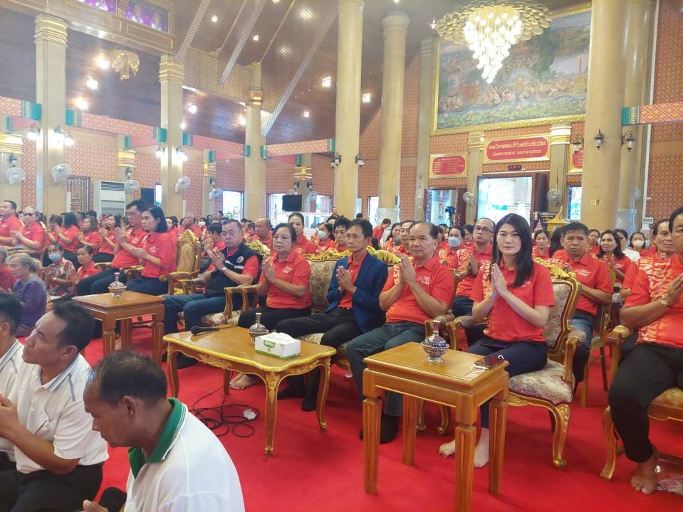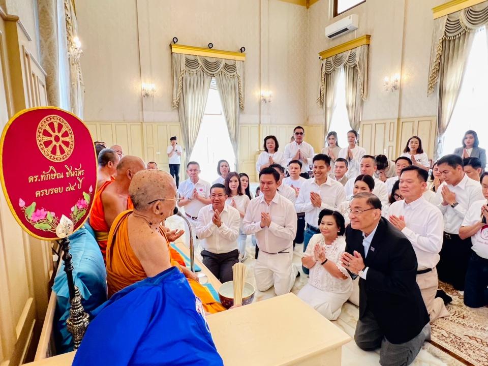 โดยคณะได้ร่วมถวายสังฆทาน ผ้าไตร ตาลปัตร เทียนพรรษา จตุปัจจัยไทยธรรม ปิ่นโต จากนั้นพระสงฆ์จำนวน 9 รูป จากวัดต่างๆ ใน กทม. ได้เจริญพระพุทธมนต์ เนื่องในวันคล้ายวันเกิดนายทักษิณ