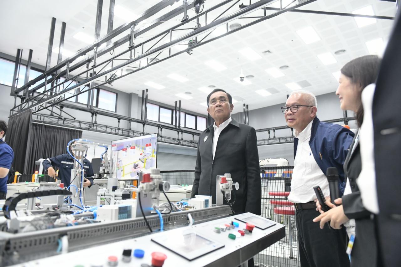 ในเวลาต่อมา นายกรัฐมนตรีและคณะ เข้ารับฟังการรายงานจากคณะผู้บริหารภายในอาคาร EECi โดย พล.อ.ประยุทธ์ กล่าวขอบคุณทุกหน่วยงาน นี่คือนโยบายรัฐบาลในปัจจุบันที่ดำเนินการมา วิจัย พัฒนา นำไปสู่การปฏิบัติและใช้ประโยชน์อย่างเป็นรูปธรรม ไม่ใช่ทำแล้วทิ้งไว้เฉยๆ เราต้องพัฒนา ไม่เช่นนั้นจะไปต่อไม่ได้ นี่คืออนาคตของประเทศที่รัฐบาลทำในหลายปีที่ผ่านมา สิ่งสำคัญที่สุดเพื่อให้รัฐบาลต่อไปนำไปสู่การศึกษา ถ้าไม่ทำต่อก็จบ ถ้าอยู่แค่ที่ทำมาก็ไร้ค่าไปทั้งหมด ประเทศชาติกำลังรอความหวัง