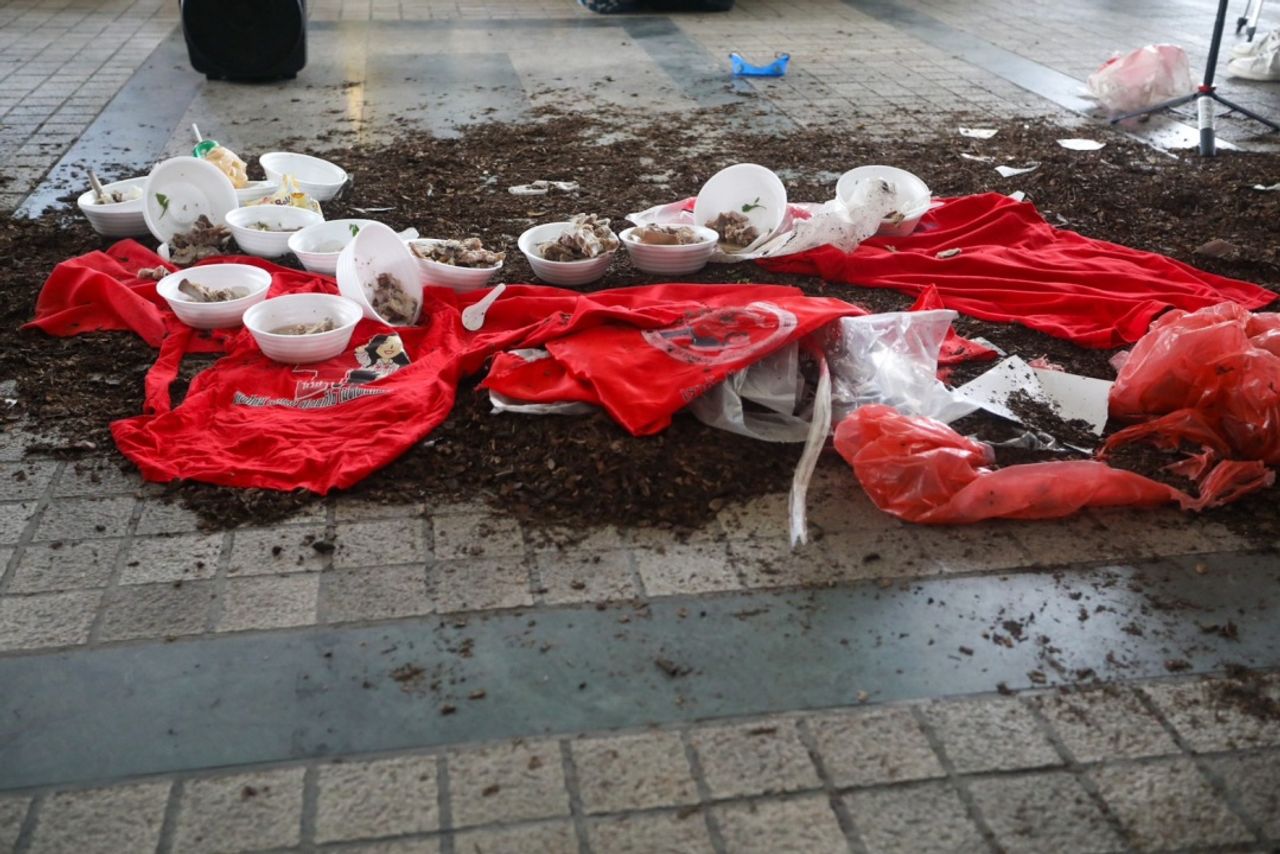 ขณะที่นายโสภณ ได้ปลุกมวลชนได้เดินทางเข้ามาในพรรคเพื่อไทย เพื่อแสดงเชิงสัญลักษณ์ต่อ ด้วยการเทปุ๋ยกาบมะพร้าวบนพื้นหน้าพรรค และยืนยันว่ากลุ่มผู้ชุมนุมที่เดินทางมานั้นเลือกเพื่อไทยไม่ได้เลือกก้าวไกล ส่วนดินพวกนี้คือธุลีดิน ที่สะท้อนถึงรากหญ้าของประชาชน และพวกตน คือ ต้นกล้าประชาธิปไตยที่พรรคเพื่อไทยหว่านขึ้นมา พ่อแม่ของพวกตนก็เป็นแนวร่วมประชาธิปไตยต่อต้านเผด็จการแห่งชาติ จึงอยากถามว่ารู้สึกอะไรบ้าง ทำลายความหวังประชาชนได้อย่างไร ยืนยันว่าที่มาไม่มีทุนอยู่เบื้องหลัง และเป็นโหวตเตอร์พรรคเพื่อไทย เป็นลูกหลานคนเสื้อแดง ก่อนจะพากันกินต้มเล้ง แสดงสัญลักษณ์ว่าพรรคเพื่อไทยจะได้มีกระดูกสันหลัง พร้อมแจกให้เจ้าหน้าที่รักษาความปลอดภัยพรรคด้วย โดยหลังกินเสร็จก็ได้นำกระดูกวางไวที่พรรคอีกด้วย พร้อมประกาศว่า ทางกลุ่มจะไปพบกับพรรคการเมืองที่ตระบัดสัตย์กับประชาชนแน่นอน ก่อนจบการจัดกิจกรรมในเวลา 18.00 น. และประกาศว่าหลังจากนี้จะเดินทางไปสมทบกับกลุ่มผู้ชุมนุมที่หอศิลปวัฒนธรรมแห่งกรุงเทพมหานคร