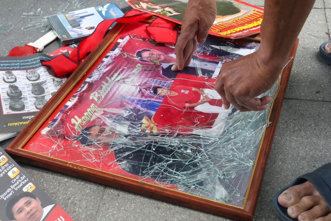 ในช่วงเวลาเดียวกัน นายสมใจ จากกลุ่มแดงเทอดไท ธนบุรี นำเสื้อผ้าที่มีโลโก้พรรคเพื่อไทย ที่มีรูป นายทักษิณ ชินวัตร และ นางสาวยิ่งลักษณ์ ชินวัตร โยนลงกับพื้น พร้อมประกาศว่า สิ่งของทั้งหมดที่นำมาวันนี้ จะนำมาเผา เนื่องจากรู้สึกผิดหวังกับอุดมการณ์การตัดสินใจของพรรคเพื่อไทย