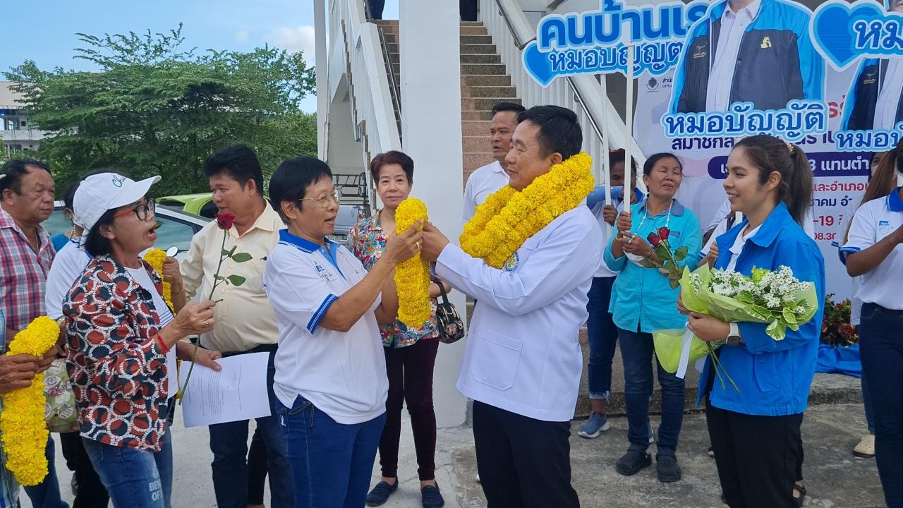 หลังสมัครเสร็จได้มีประชาชนในพื้นที่ อ.แกลง อ.เขาชะเมา เดินทางมามอบดอกไม้ให้กำลังใจให้นายแพทย์บัญญิติ พร้อมตะโกน หมอบัญญัติสู้ๆ หมอบัญญัติคนบ้านเรา