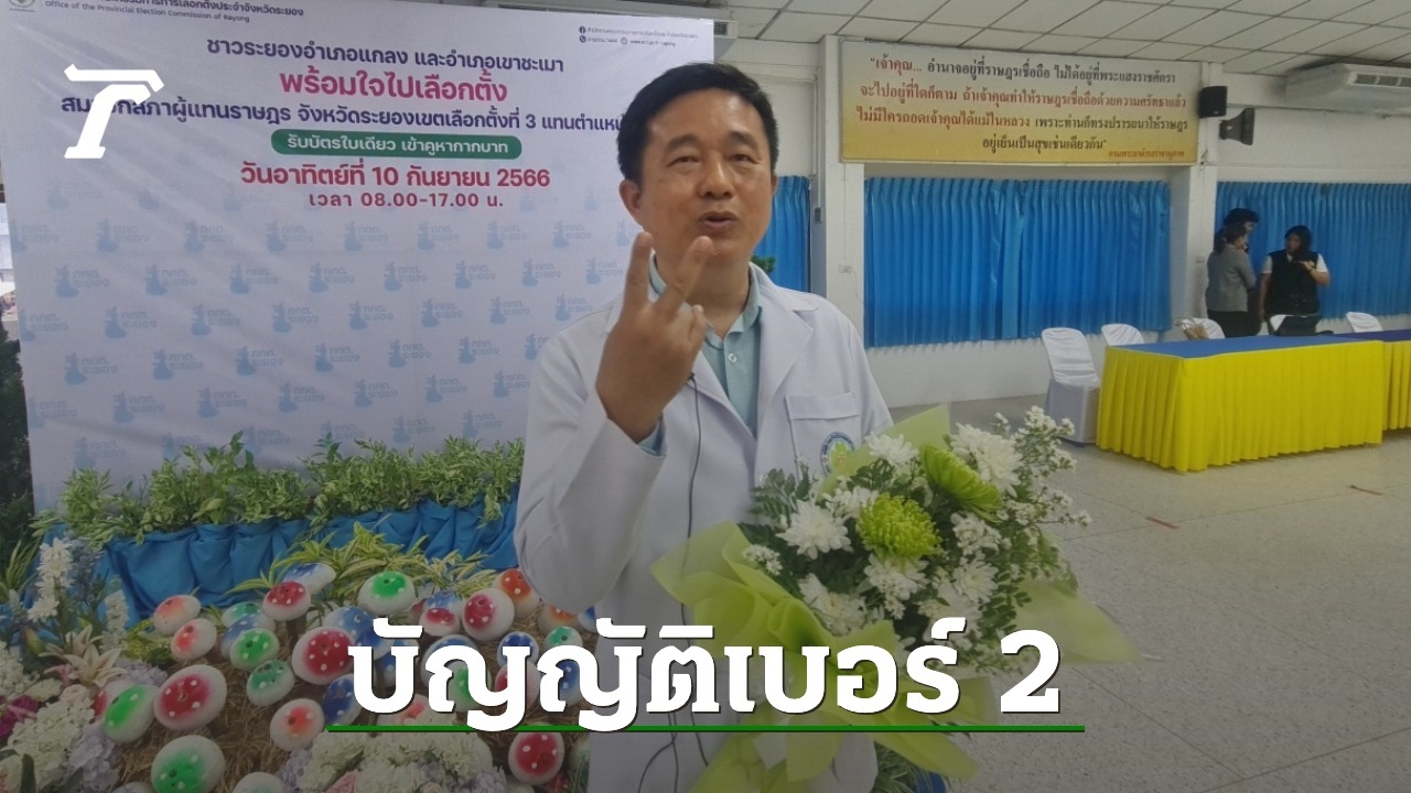นางสาวกานต์จรัส เอียดทองใส นายอำเภอแกลง ประธานคณะกรรมการเลือกตั้งเขต 3 ระยอง กล่าวว่า นายแพทย์บัญญัติ เจตนจันทร์ พรรคประชาธิปัตย์ เป็นผู้สมัคร รายที่ 2 จึงได้ เบอร์ 2 ต่อจากผู้สมัครจากพรรคก้าวไกล สำหรับการเปิดรับสมัครยังเหลือเวลาอีก 3 วัน คาดว่ายังมีพรรคการเมืองเข้ามาสมัครเพิ่มอีก