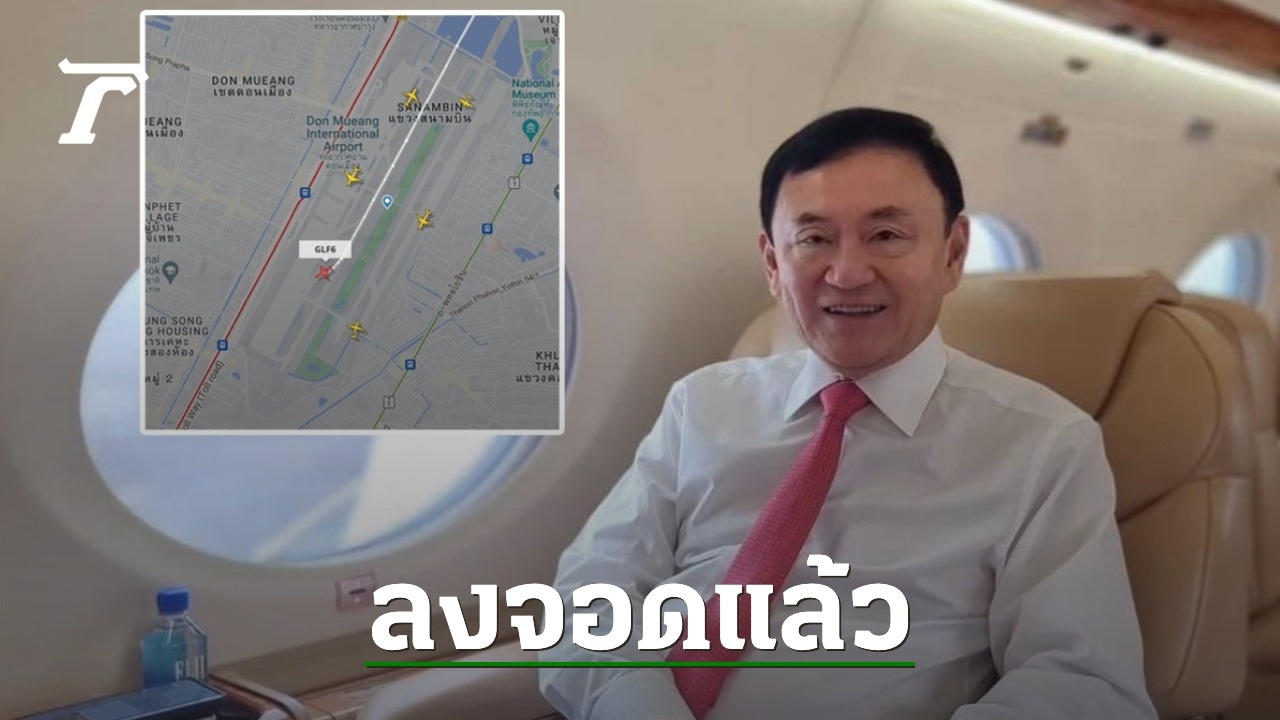 เครื่องบินส่วนตัว "ทักษิณ" ถึงลานจอดเอ็มเจ็ท สนามบินดอนเมือง ประเทศไทยแล้ว เมื่อเวลา 9 โมงตรง คอลคุยแฟนคลับที่มารอต้อนรับ