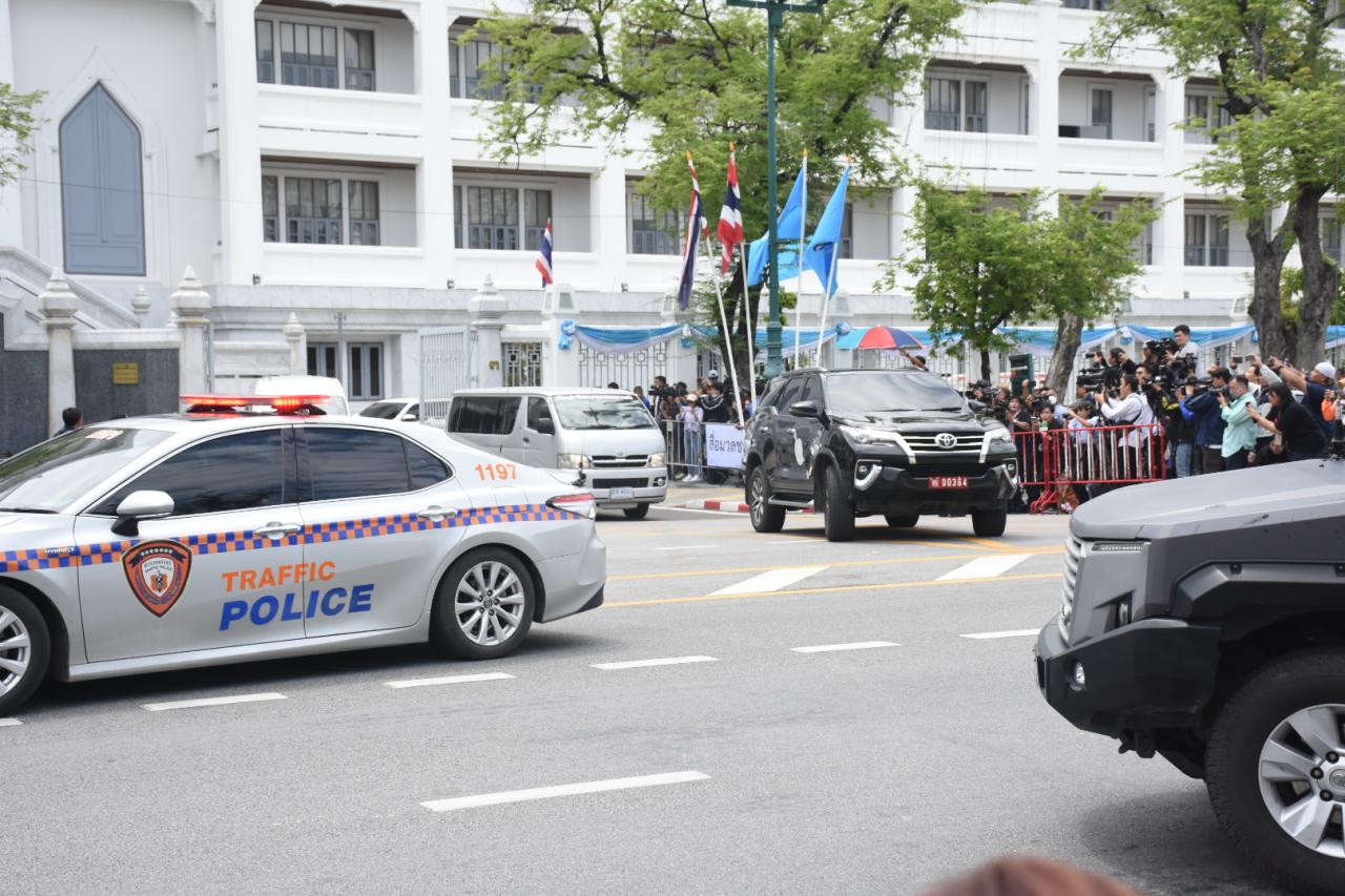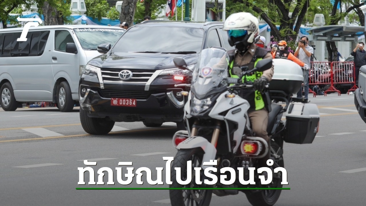 ขบวนรถของเจ้าหน้าที่ตำรวจคุมตัว "ทักษิณ" ออกจากศาลฎีกาแล้ว มุ่งหน้าสู่เรือนจำพิเศษกรุงเทพฯ ท่ามกลางเสียงเชียร์ของมวลชนเสื้อแดง