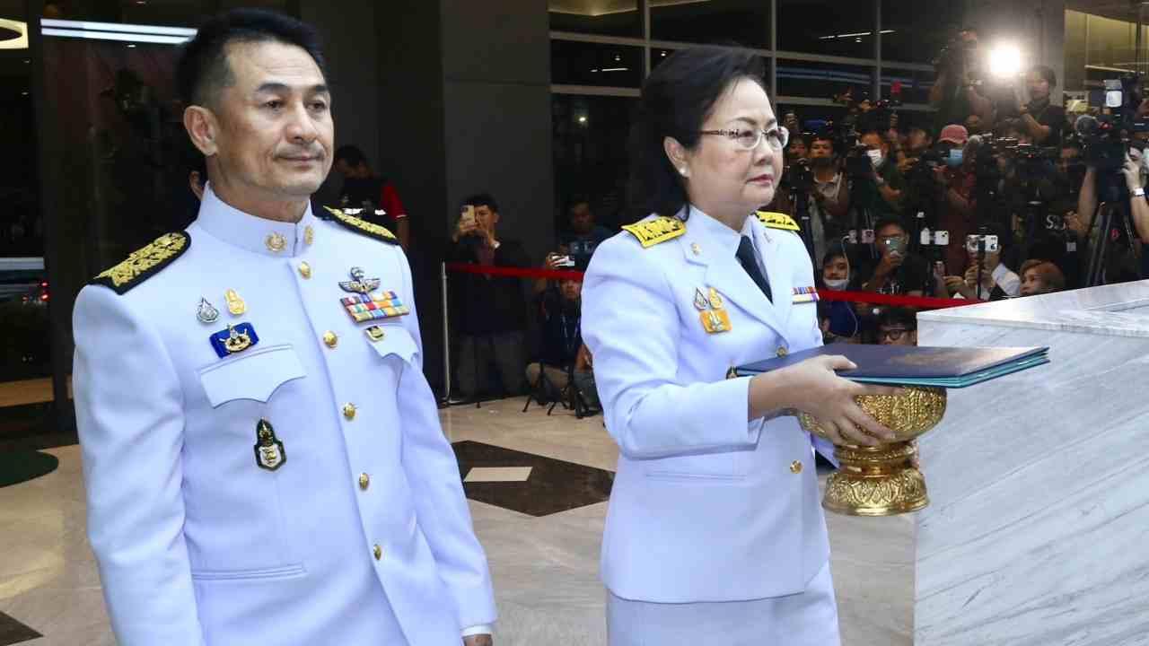 วันที่ 23 ส.ค. 66 ที่พรรคเพื่อไทย เมื่อเวลา 18.00 น. ผู้สื่อข่าวรายงานว่า นางพรพิศ เพชรเจริญ เลขาธิการสภาผู้แทนราษฎร อัญเชิญพระบรมราชโองการ แต่งตั้ง นายเศรษฐา ทวีสิน เป็นนายกรัฐมนตรี คนที่ 30 ของประเทศไทย ทั้งนี้ มีนายแพทย์ชลน่าน ศรีแก้ว หัวหน้าพรรคเพื่อไทย และคณะแกนนำพรรคเพื่อไทย ออกมายืนรอต้อนรับ