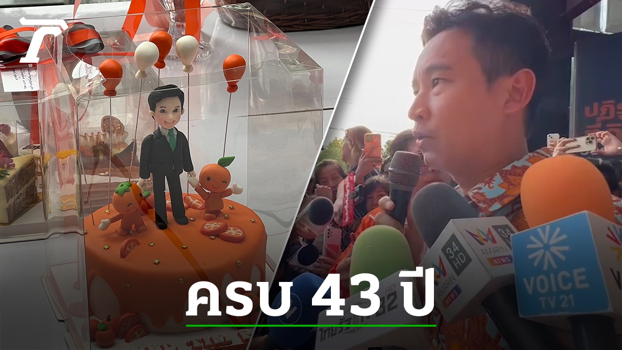 "พิธา" วันเกิดครบ 43 ปี ใส่เสื้อสีส้มเข้าพรรคก้าวไกล แฟนคลับดักรอแห่อวยพรให้สุขภาพแข็งแรง เจ้าตัวยิ้มแฉ่ง ขอบคุณ บอก "น้องพิพิม" หอมแก้มแล้วเมื่อเช้า ขณะพรรคขอ อย่าร้องเพลง หวั่นผิดกฎหมายเลือกตั้ง มอบเค้กวันเกิดให้"ทิม-พิธา"