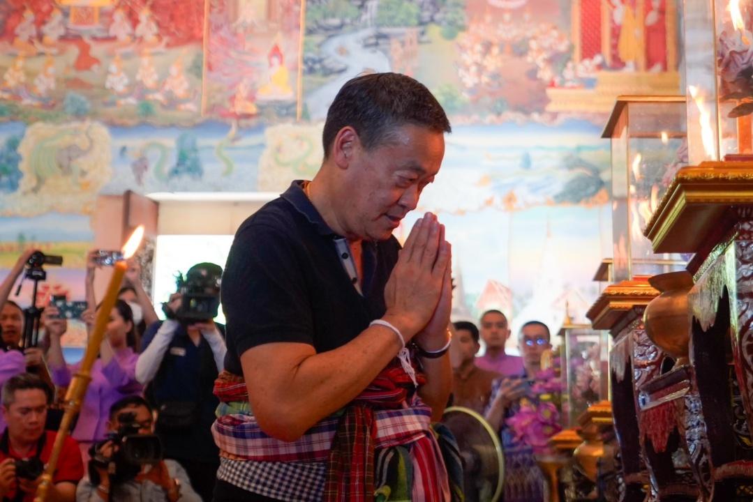 ทั้งนี้ ก่อนเดินทางไปขึ้นเครื่องที่สนามบินอุดรธานีนายกรัฐมนตรี นายเศรษฐา ได้เดินมาถึงอุโบสถได้มีชาวบ้านเข้ามาขอถ่ายรูป พร้อมนำผ้าขาวม้ามาผูกที่เอว และกล่าวว่า ต้องผูกแน่นๆ จะได้อยู่นานๆ พวกเรารอมานานแล้ว นายกรัฐมนตรีต้องอยู่นานๆ จากนั้นนายเศรษฐา ได้เข้ากราบสักการะพระพุทธรูปหลวงพ่อพระใส พระพุทธรูปสำคัญคู่เมืองหนองคาย และนมัสการพระเทพวชิรคุณ เจ้าอาวาสวัดโพธิ์ชัย พร้อมทั้งรับพรจากเจ้าอาวาสที่ระบุว่า ได้ติดตามพวกท่านทั้งหมด รู้จักชื่อรัฐมนตรีทุกคน ขอให้ช่วยกันบริหารประเทศให้ดี จากนั้นนายเศรษฐา ได้ก้มกราบรับน้ำมนต์จากเจ้าอาวาส โดยเจ้าอาวาสได้ใช้ตอกพรมน้ำมนต์แตะไปที่ศีรษะของนายกรัฐมนตรี