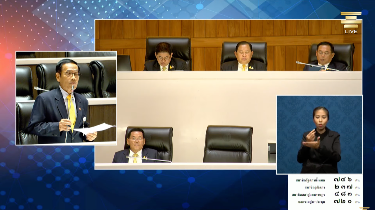“ขณะนี้ประชาชนทั่วประเทศก็ยังรอเงินก้อนนี้อยู่ เขาอยากได้เงิน 10,000 บาท แต่ผมเกรงว่าประชาชนจะเสพติดเป็นนิสัยรอเงินจากรัฐอย่างเดียว ไม่ทำมาหากิน ประเทศอาจล่มสลายได้ เหมือนกับประเทศอาร์เจนตินา ผมจึงกราบเรียนท่านประธานผ่านไปยังท่านเศรษฐา ทวีสิน ตอนนี้หายไปไหนก็ไม่รู้ หายไปไหนช่วยมาฟังหน่อย เพราะในฐานะนายกรัฐมนตรี รัฐมนตรีว่าการกระทรวงการคลัง ประธานกรรมการวินัยการเงินการคลังแห่งชาติ ประธานยุทธศาสตร์ชาติ ผมเป็นคนเลือกท่านเป็นนายกฯ ก็อยากจะฝากเตือนว่า พิจารณานโยบายเงินดิจิทัลด้วยความรอบคอบ เพราะอาจมีผู้หวังดีรักชาติรักแผ่นดิน ไปร้องเรียนกล่าวหาคณะกรรมการป้องกันและปราบปรามการทุจริตแห่งชาติได้ว่า ท่านและคณะจงใจปฏิบัติหน้าที่ หรือใช้อำนาจขัดต่อบทบัญญัติของรัฐธรรมนูญ หรือกฎหมาย”