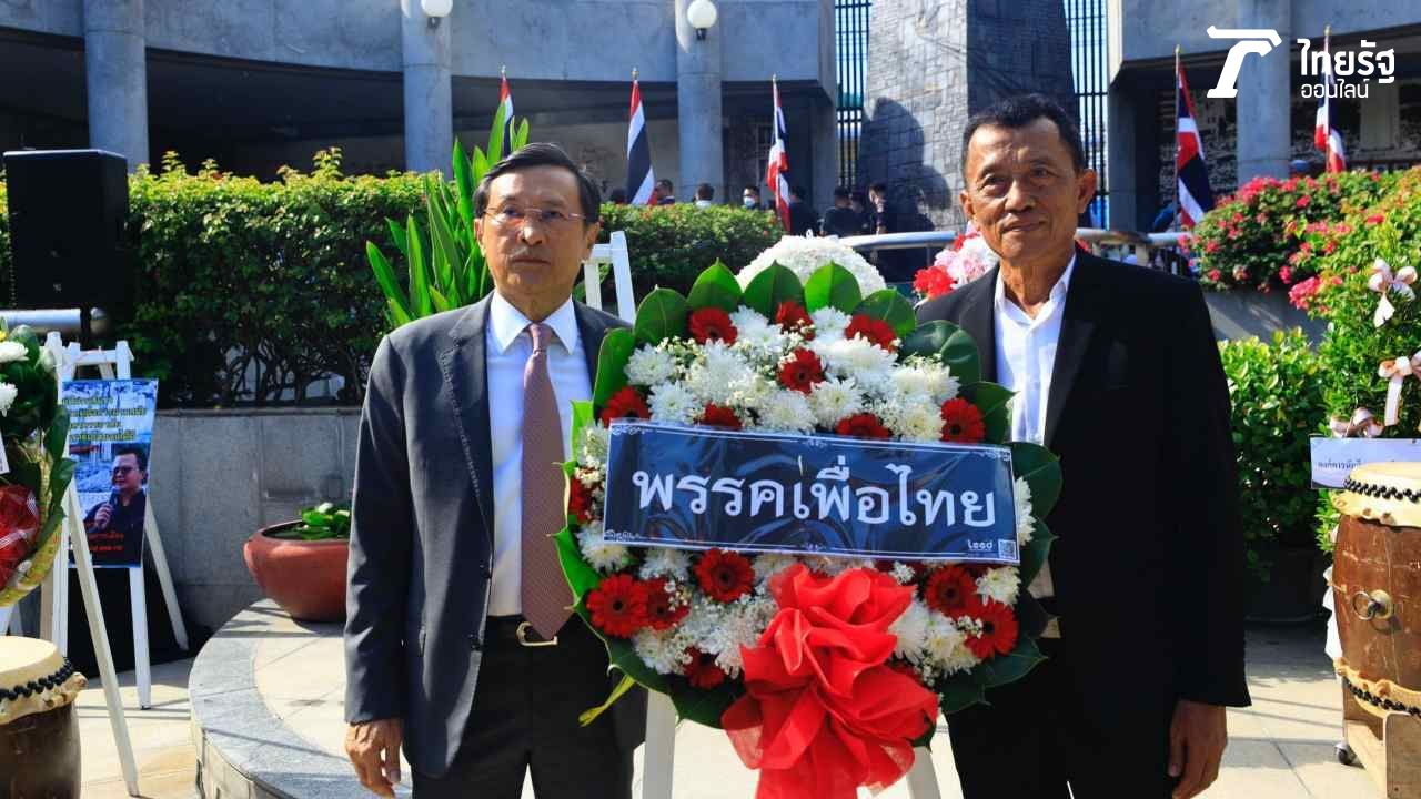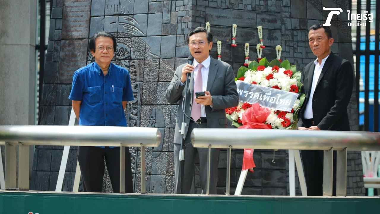 โอกาสนี้ พรรคเพื่อไทย นำโดย นายจาตุรนต์ ฉายแสง และ นายแพทย์ทศพร เสรีรักษ์ สส.บัญชีรายชื่อ พรรคเพื่อไทย ร่วมวางพวงหรีดและกล่าวรำลึกถึงเหตุการณ์ 14 ตุลา ด้วย