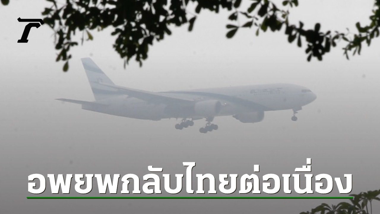 1.เที่ยวบินเช่าเหมาลำของสายการบิน Spice Jet ออกเดินทางจากกรุงเทลอาวีฟ วันที่ 23 ตุลาคม 2566 เวลา 05.15 น. จากนั้นแวะเปลี่ยนเครื่องที่ท่าอากาศยานที่ดูไบ สหรัฐอาหรับเอมิเรตส์ เป็นเครื่องบินการบินไทย เที่ยวบิน TG 8953 จากสนามบิน Fujairah (ดูไบ) ถึงท่าอากาศยานสุวรรณภูมิ เวลา 16.10 น. ของวันเดียวกัน โดยมีจำนวนผู้ลงทะเบียน 280 คน (ตรวจสอบรายชื่อผู้เดินทางกลับ)