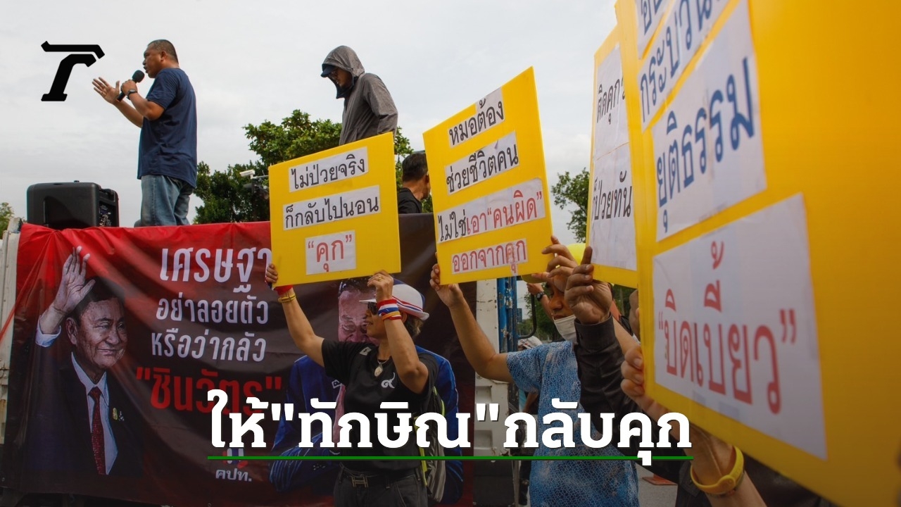 กลุ่ม คปท. ร้อง “เศรษฐา” ข้างทำเนียบฯ เอา "ทักษิณ ชินวัตร" กลับเข้าคุก ลั่น อย่าลอยตัวเหนือปัญหา ชี้ หากไม่ตอบรับ จะมาหาทุกวันอังคาร เชื่อมีหลายคนอยากมาร่วม ไม่ใช่แค่พี่น้องเสื้อเหลือง เสื้อแดงก็อยากมา