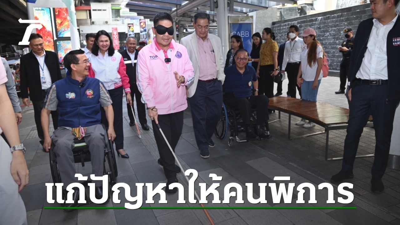“วราวุธ” หวังสัมผัสความรู้สึกคนพิการ ปิดตาเดินไม้เท้า หวิดหน้าคะมำขณะทดลองนั่งวีลแชร์ ขอรับไปเป็นการบ้าน แก้ปัญหาให้คนพิการ หลังบางจุดเสี่ยงอุบัติเหตุ