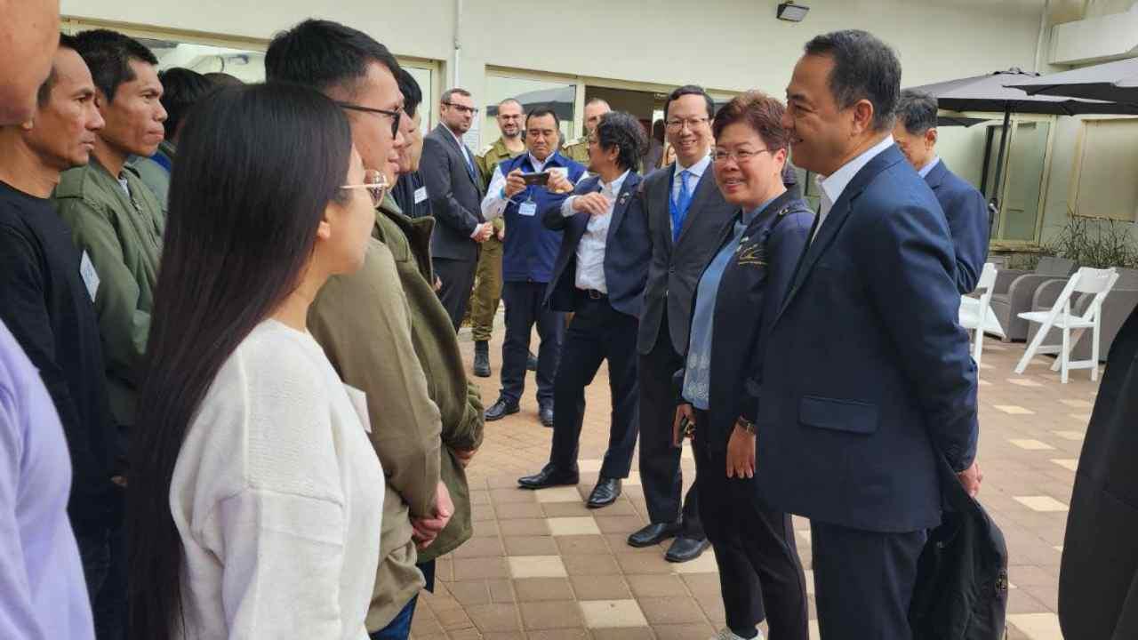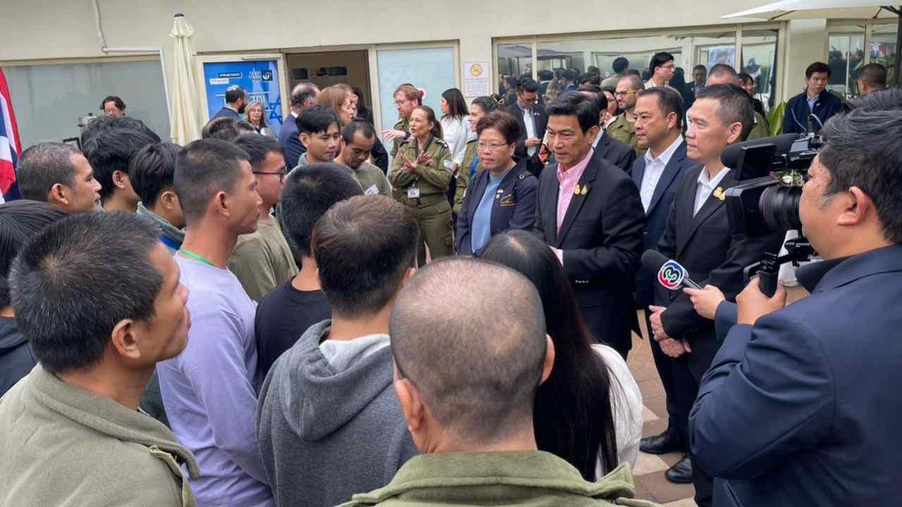 เมื่อวันที่ 28 พ.ย. 66 นายไพโรจน์ โชติกเสถียร ปลัดกระทรวงแรงงาน มอบหมายให้ นายสมาสภ์ ปัทมะสุคนธ์ ผู้ตรวจราชการกระทรวงแรงงาน เดินทางเข้าเยี่ยมแรงงานไทยในอิสราเอลที่ได้รับการปล่อยตัวทั้ง 17 ราย พร้อมกับคณะของ นายปานปรีย์ พหิทธานุกร รองนายกรัฐมตรีและรัฐมนตรีว่าการกระทรวงการต่างประเทศ โดยมี นายกิตติ์ธนา ศรีสุริยะ อัครราชทูตที่ปรึกษา (ฝ่ายแรงงาน) ประจำสถานเอกอัครราชทูต ณ กรุงเทลอาวีฟ เข้าเยี่ยมแรงงานด้วย ณ โรงพยาบาล Shamir Medical Center ประเทศอิสราเอล