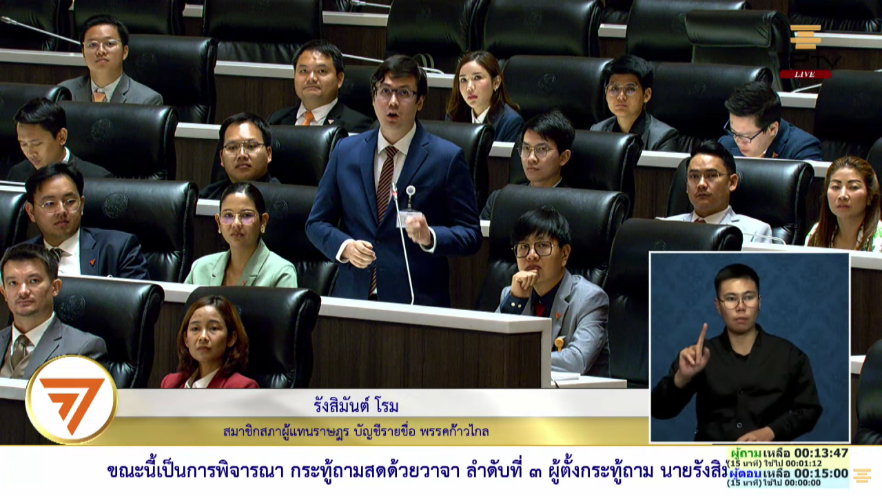 "รังสิมันต์ โรม" ถามกระทู้สด "เศรษฐา" กรณีหลุดพูดในที่ประชุมเพื่อไทยปมตั๋วตำรวจ ด้าน "สมศักดิ์" ได้รับมอบหมายมาตอบแทน มั่นใจ นายกฯ ไร้เจตนาเกี่ยวกับการใช้ตั๋ว และไม่มีการให้ความช่วยเหลือใดๆ ทั้งสิ้น