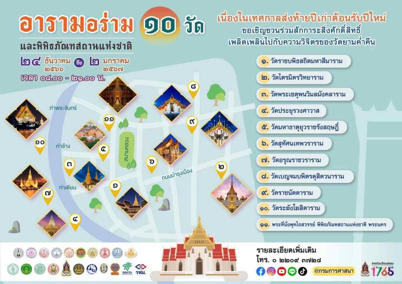 "กิจกรรมการสวดมนต์ข้ามปี เป็นการเปิดโอกาสให้ประชาชนได้น้อมนำหลักธรรมคำสอน มายึดถือ ปฏิบัติ ต้อนรับปีใหม่ด้วยความสุขใจ ซึ่งมีวัดทุกวัดทั่วราชอาณาจักร และวัดไทยในต่างประเทศ ได้ร่วมจัดกิจกรรมนี้ นอกจากนี้ รัฐบาลยังได้จัดกิจกรรมทางศาสนาอื่น เช่น “อารามอร่าม 10 วัด” ของกระทรวงวัฒนธรรม โดยจะเปิดไฟส่องสว่าง ให้นักท่องเที่ยวและประชาชนได้เข้าเยี่ยมชมความสวยงามและศิลปกรรมอันทรงคุณค่าในยามค่ำคืน ที่วัดระฆังโฆสิตาราม วรมหาวิหาร, วัดอรุณราชวราราม ราชวรมหาวิหาร, วัดประยุรวงศาวาส วรวิหาร, วัดราชบพิธสถิตมหาสีมาราม ราชวรวิหาร, วัดสุทัศนเทพวราราม ราชวรมหาวิหาร, วัดราชนัดดาราม วรวิหาร, วัดเบญจมบพิตรดุสิตวนาราม ราชวรวิหาร, วัดมหาธาตุยุวราชรังสฤษฎิ์ ราชวรมหาวิหาร, วัดพระเชตุพนวิมลมังคลาราม ราชวรมหาวิหาร และวัดไตรมิตรวิทยาราม วรวิหาร จึงอยากขอเชิญชวนให้ประชาชนได้ร่วมกิจกรรมดังกล่าว เพื่อความเป็นสิริมงคลแก่ชีวิตและครอบครัว ในโอกาสส่งท้ายปีเก่า ต้อนรับปีใหม่นี้ค่ะ" นางพวงเพ็ชร กล่าว