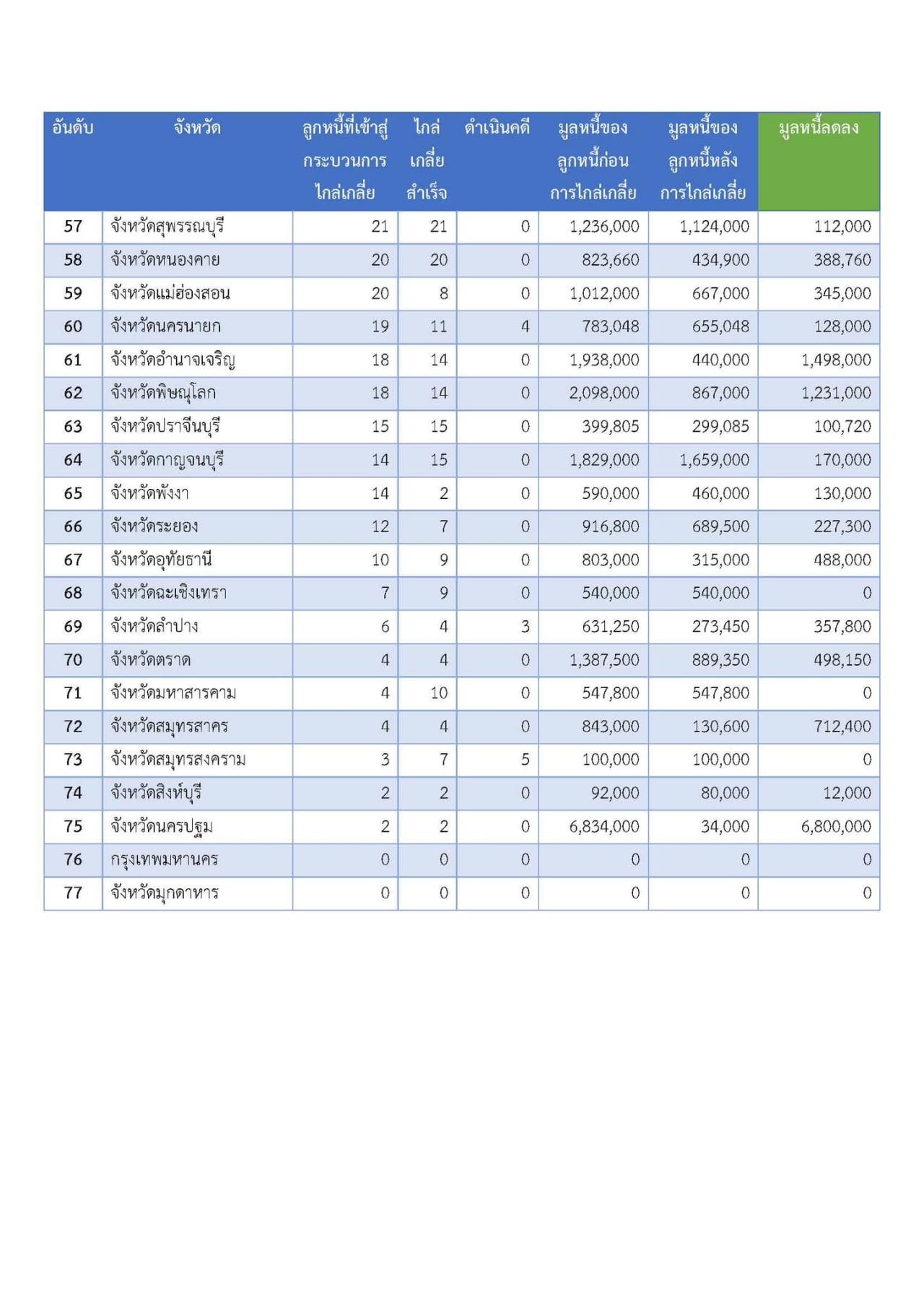 1. จังหวัดแม่ฮ่องสอน มีผู้ลงทะเบียน 194 ราย เจ้าหนี้ 158 ราย มูลหนี้ 10.003 ล้านบาท