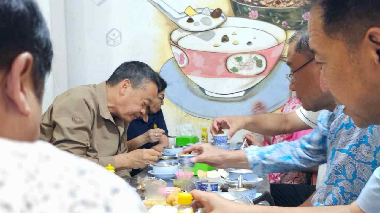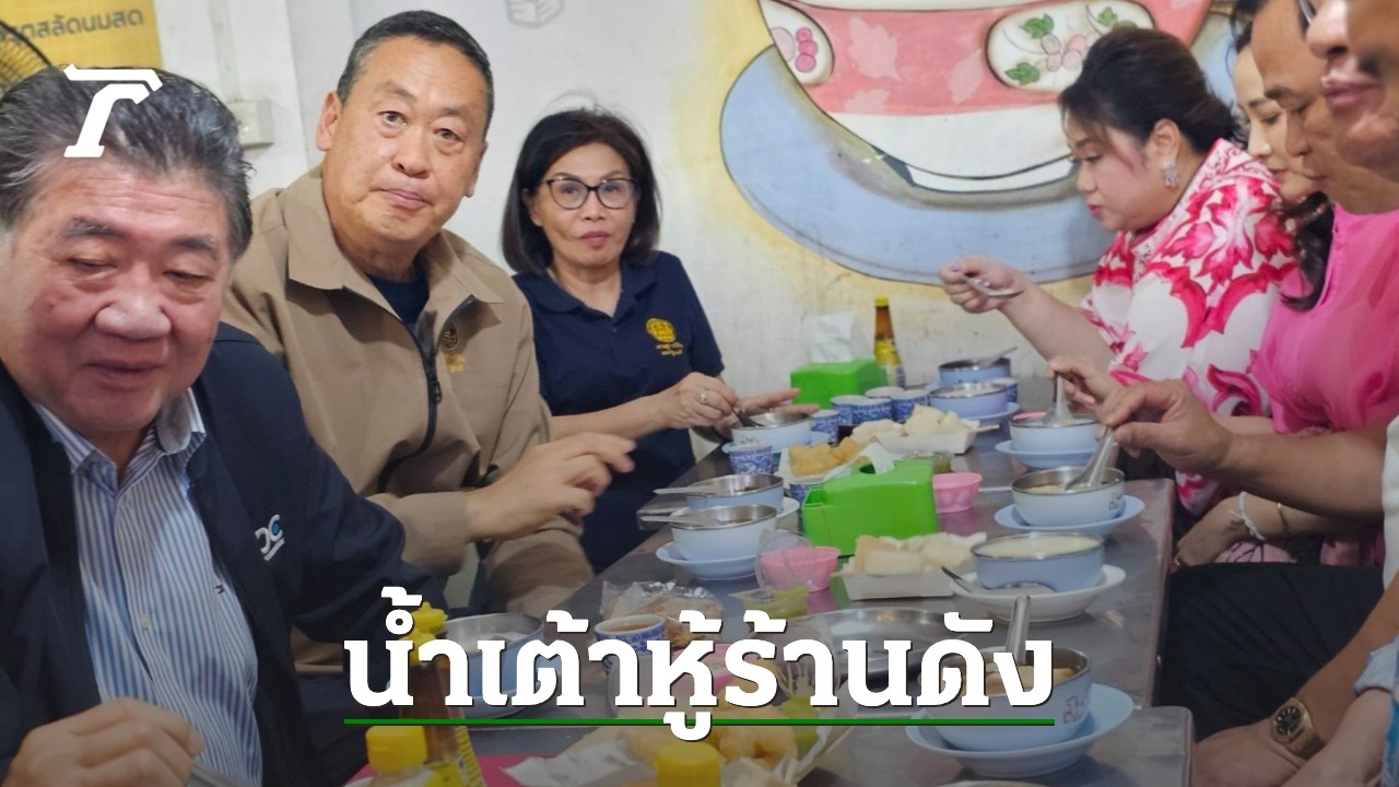 นายกฯ ควง “ภูมิธรรม-อนุทิน-สุริยะ-เสริมศักดิ์-ศุภมาศ” นั่งร้านดัง น้ำเต้าหู้ดังโต้รุ่ง เมืองระนอง กินน้ำเต้าฮวย ขนมปังสังขยา พร้อมโชว์ตักน้ำเต้าหู้ ชาวระนองแห่เซลฟี่ด้วย