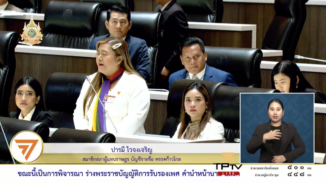 ส่วนนายปารมี ไวจงเจริญ สส.บัญชีรายชื่อ พรรคก้าวไกล อภิปรายว่า ตนขอพูดจากก้นบึ้งของหัวใจจากผู้หญิงข้ามเพศ อายุ 51 ปี ตนเจ็บปวดกับคำนำหน้านามว่า นาย มาตลอดชีวิต นี่เป็นความฝันสูงสุดของตนสิ่งหนึ่งกับการที่จะได้เปลี่ยนคำนำหน้าให้ตรงกับอัตลักษณ์ทางเพศของตนในปัจุบัน ตนฝันสิ่งนี้มานาน ความฝันของตน คือ การได้เป็นผู้หญิงอย่างสมบูรณ์ ซึ่งตนได้บรรลุความฝันเป็นผู้หญิงอย่างสมบูรณ์ไปหลายสิบปีแล้ว แต่ความฝันที่สองที่สูงสุด คือ ออกจากความจากความเจ็บปวดที่ตนถูกเรียกว่า นาย ทุกครั้ง และใครที่ไม่ได้เป็นบุคคลข้ามเพศไม่มีทางเข้าใจสิ่งนี้ ดังนั้นขอให้สภาฯ มาร่วมกันถกเถียงปรับแก้ในจุดที่มีปัญหา และขอวิงวอนจากหัวใจของหญิงข้ามเพศที่รอสิ่งนี้มานานตลอดชีวิต