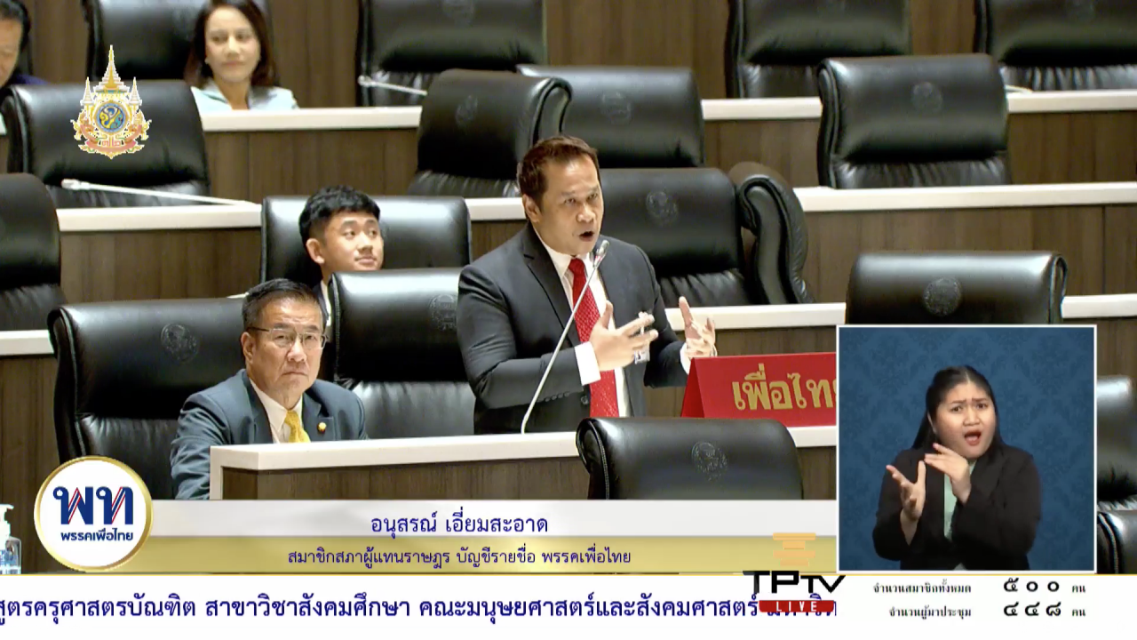 ส่วนนายอนุสรณ์ เอี่ยมสะอาด สส.บัญชีรายชื่อ พรรคเพื่อไทย อภิปรายว่า รู้สึกภาคภูมิใจทุกครั้งที่สภาฯ เปิดพื้นที่ให้กับการส่งเสริมสิทธิเสรีภาพมนุษยชน และรู้สึกเท่ ที่สภาไทยพูดถึงเทรนด์ของโลก กฎหมายสมรสเท่าเทียม มีหลายเรื่องที่ให้ความเป็นธรรม เช่น นิติสินสมรส และเสรีภาพขั้นพื้นฐานอื่นๆ แต่พอมาดูเรื่องของคำเปลี่ยนคำนำหน้านาม เราต้องรับฟังให้รอบ อย่าเหาะเกินลงกา ไปไกลชนิดที่ว่า สุดลิ่มทิ่มประตู และจะทำให้สร้างปัญหาต่อ ก่อปัญหาใหม่ และการที่เราจะภาคภูมิใจหรือไม่ภาคภูมิใจไม่ได้ขึ้นอยู่กับการใช้คำนำหน้าว่าอะไร