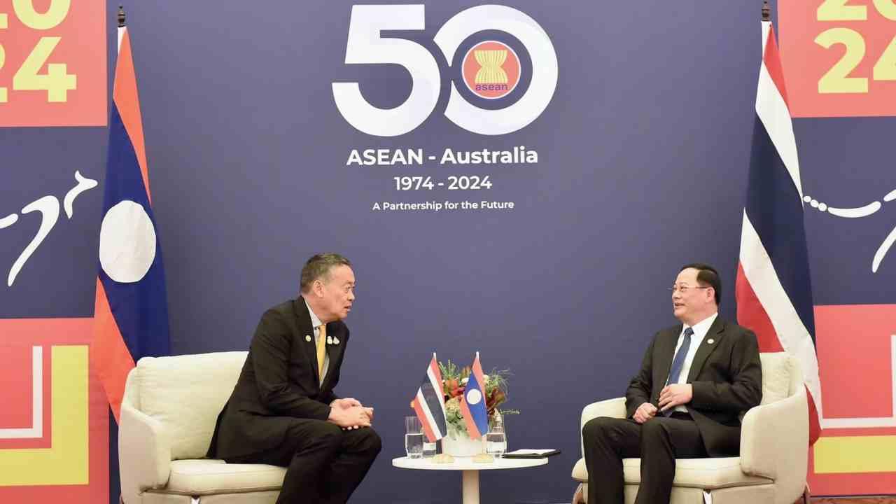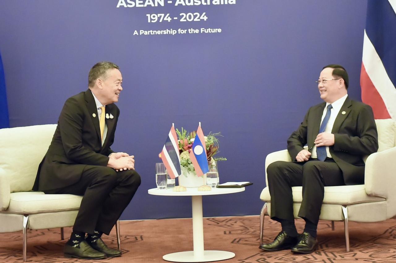 วันที่ 5 มี.ค. เวลา 11.20 น. (ตามเวลาท้องถิ่นเมืองเมลเบิร์น เครือรัฐออสเตรเลีย ซึ่งเร็วกว่าไทย 4 ชั่วโมง) ณ Melbourne Convention and Exhibition Centre (MCEC) นายเศรษฐา ทวีสิน นายกรัฐมนตรี และรัฐมนตรีว่าการกระทรวงการคลัง พบหารือกับนายสอนไซ สีพันดอน (His Excellency Mr. Sonexay Siphandone) นายกรัฐมนตรีสาธารณรัฐประชาธิปไตยประชาชนลาว ในช่วงระหว่างการประชุมสุดยอดอาเซียน-ออสเตรเลีย สมัยพิเศษ เพื่อฉลองวาระครบรอบ 50 ปี ความสัมพันธ์ โดยภายหลังเสร็จสิ้นการหารือ นายชัย วัชรงค์ โฆษกประจำสำนักนายกรัฐมนตรี สรุปสาระสำคัญ ดังนี้