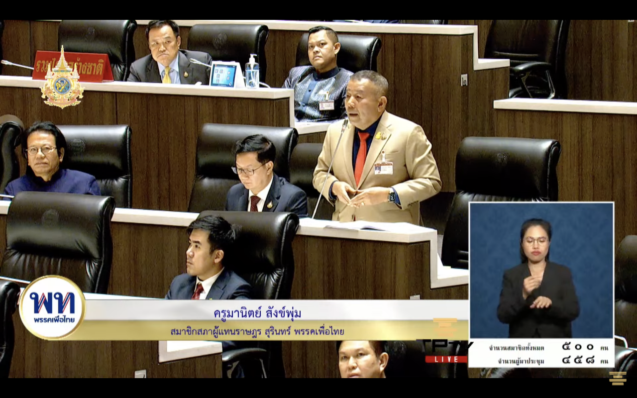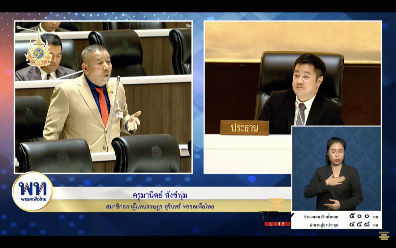ทำให้นายครูมานิตย์ สังข์พุ่ม สส.สุรินทร์ พรรคเพื่อไทย ลุกกล่าวอภิปรายว่า ไม่เคยออกมาก้าวล่วงเรื่องส่วนตัวของนายปดิพัทธ์ เพราะตนเองก็เป็น 1 เสียงที่เป็นโหวตเตอร์ให้นายปดิพัทธ์ มาทำหน้าที่รองประธานสภาฯ แต่หากพูดถึงเรื่องความโปร่งใส อยากถามว่าการจัดกิจกรรมในสภาฯ ของนายปดิพัทธ์ นำใครมาเป็นวิทยากร นายปดิพัทธ์ จึงกล่าวแย้งว่าขอให้อยู่ในเรื่องที่หารือก่อน และขอให้อยู่ในประเด็นเมื่อช่วงเช้าที่ผ่านมา