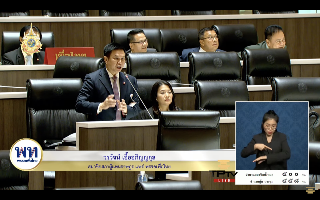 ด้านนายวรวัจน์ เอื้ออภิญญกุล สส.แพร่ พรรคเพื่อไทย ขอลุกอภิปรายว่า ในฐานะที่ตนเป็น สส.ด้วย และเคยเป็นฝ่ายบริหารด้วย ทั้งยังเป็นกรรมาธิการงบประมาณมาหลายสมัย ขอเรียนว่า เราแยกหน้าที่กันเด็ดขาด ระหว่างฝ่ายบริหาร และฝ่ายนิติบัญญัติ เหตุผลที่ต้องให้นายกฯ เป็นผู้พิจารณาออกกฎหมายเกี่ยวกับการเงิน เพราะหลายกฎหมายไปออกกฎหมายในหน่วยงานตนเอง ทำให้เม็ดเงินออกนอกงบประมาณจำนวนมาก ทำให้เงินที่จะมาอัดฉีดในระบบหายไป “เราอยู่ในระบบนิติบัญญัติขอให้ทำหน้าที่อย่างเต็มที่ อะไรที่เป็นหน้าที่ของนายกรัฐมนตรีอย่าไปยุ่ง เพราะเป็นอำนาจฝ่ายบริหารในการเห็นสมควร จึงขออย่าไปก้าวก่าย”