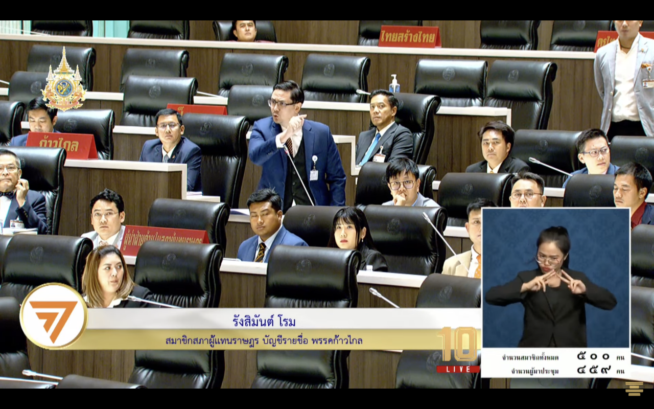 ด้านนายรังสิมันต์ โรม สส.บัญชีรายชื่อ พรรคก้าวไกล กล่าวโต้ตอบนายครูมานิตย์ ว่า เป็น สส.หลายสมัย ใช้คำว่า ไอ้หนู กับเพื่อนสมาชิกในห้องนี้ได้อย่างไร เพราะตนเองก็ให้ความเคารพนายครูมานิตย์มานาน แต่การใช้คำว่าไอ้หนูแบบนี้ถือว่าไม่เคารพกัน