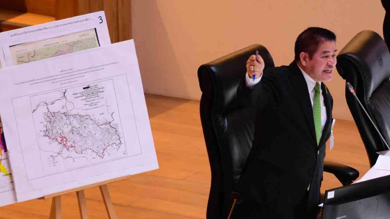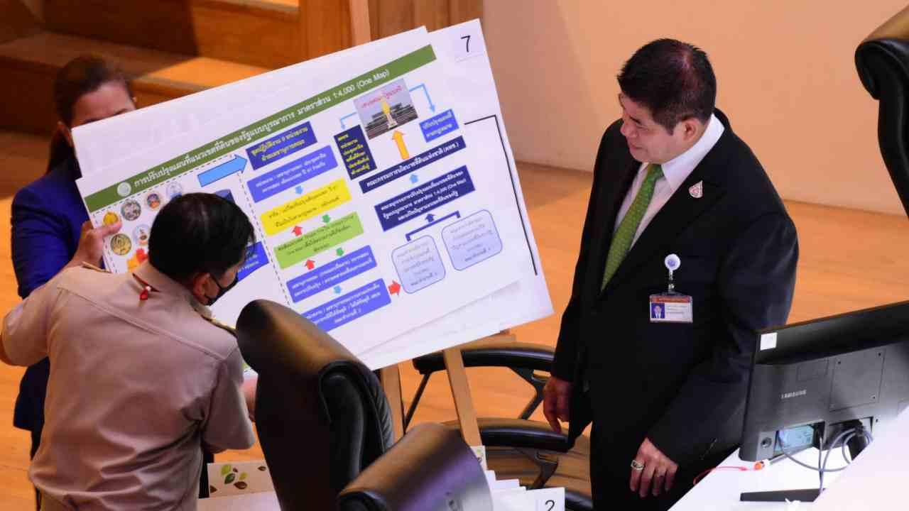 ร.อ.ธรรมนัส ตอบว่า หลังจากกรมแผนที่ทหารตรวจสอบเสร็จสิ้นแล้วภายใน 2 เดือน จะต้องรายงานไปที่คณะกรรมการนโยบายที่ดินแห่งชาติ (คทช.) ที่มีนายกรัฐมนตรีเป็นประธาน หลังจากนั้นจะนำเข้าสู่คณะรัฐมนตรี (ครม.) เห็นชอบแผนที่วันแม็ป ระหว่างนี้ต่างฝ่ายต่างถอยคนละก้าวเพื่อรอวันแม็ป