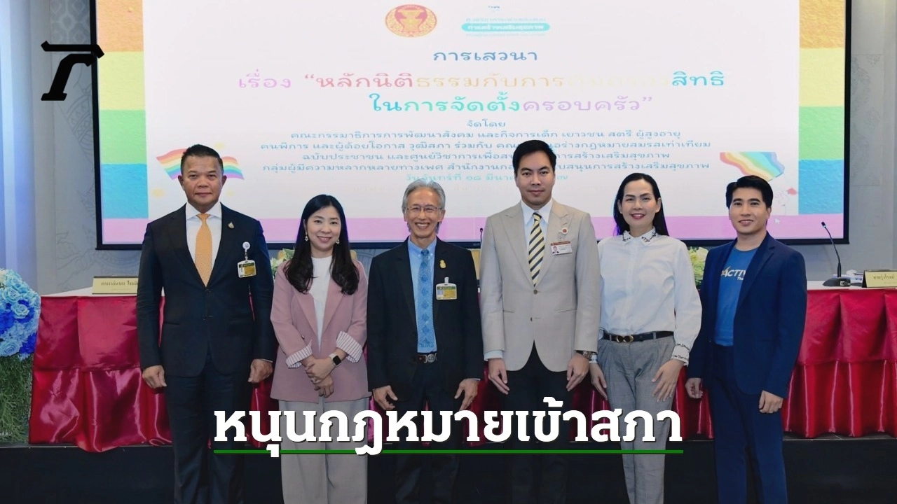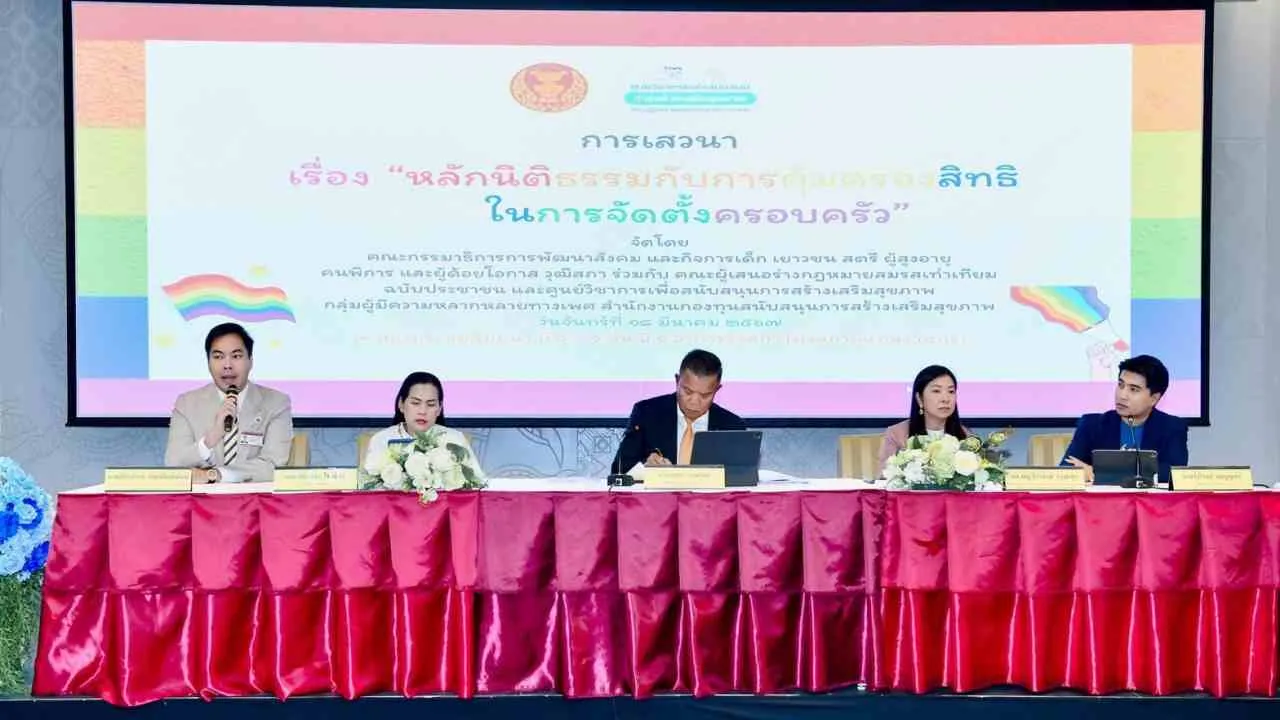 วันที่ 19 มี.ค. ที่รัฐสภา คณะกรรมาธิการการพัฒนาสังคมและกิจการเด็ก, เยาวชน, สตรี, ผู้สูงอายุ คนพิการ และผู้ด้อยโอกาส วุฒิสภา ร่วมกับคณะผู้เสนอร่างกฎหมายสมรสเท่าเทียม ฉบับประชาชน และศูนย์วิชาการเพื่อสนับสนุนการสร้างเสริมสุขภาพ กลุ่มผู้มีความหลากหลายทางเพศ สำนักงานกองทุนสนับสนุนการสร้างเสริมสุขภาพ จัดเวทีเสวนา “หลักนิติธรรมกับการคุ้มครองสิทธิในการจัดตั้งครอบครัว” เกี่ยวกับสิทธิในการจัดตั้งครอบครัวของบุคคลที่มีความหลากหลายทางเพศ (LGBTQIAN+) รวมถึงกฎหมายที่เกี่ยวข้อง เช่น การเรียก “บุพการี” และเทคโนโลยีช่วยในการเจริญพันธุ์ทางการแพทย์เพื่อการมีบุตร ตามที่ กมธ.ภาคประชาชน ได้เสนอให้มีแก้ไข