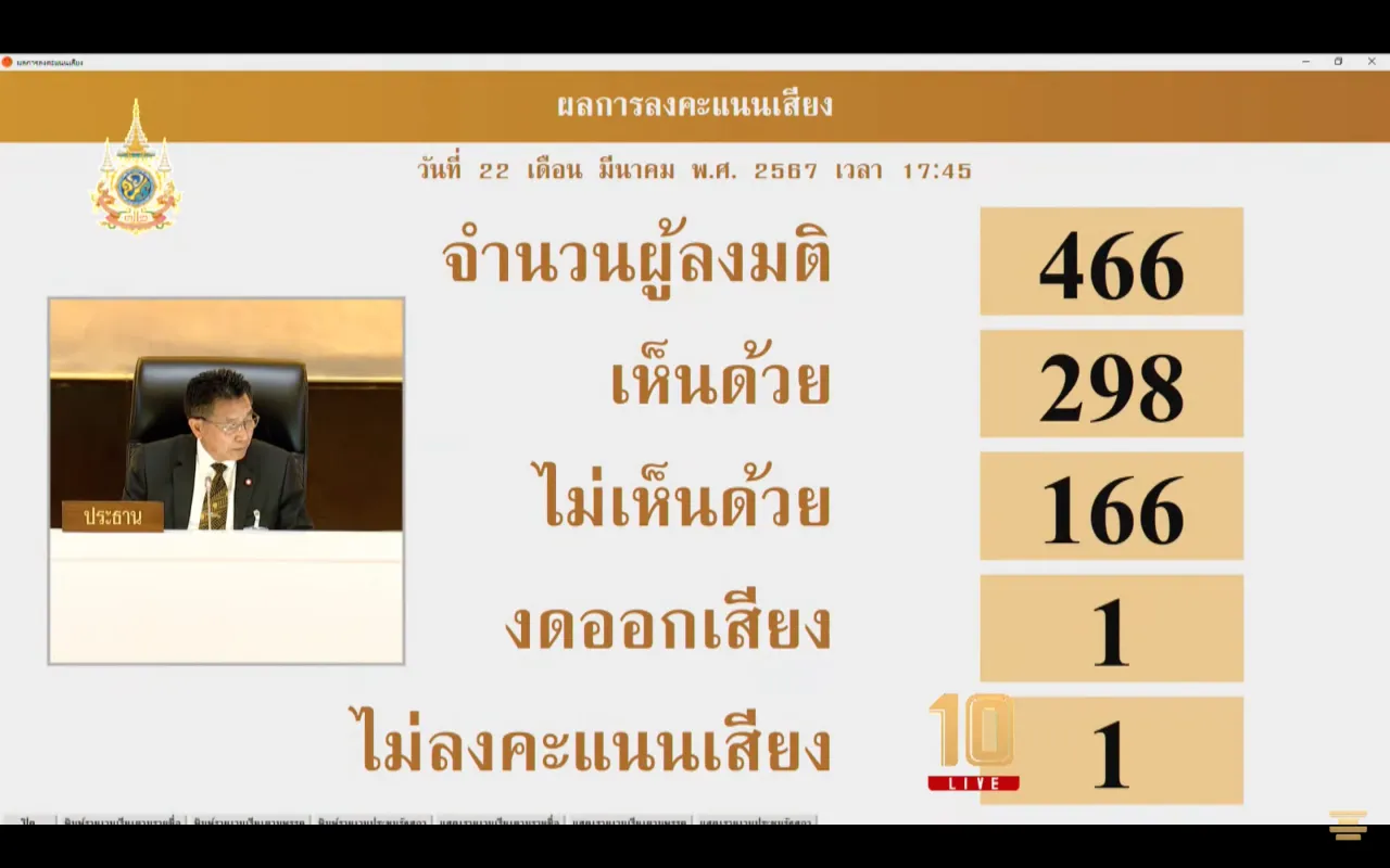 ไม่เห็นชอบ 166 เสียง