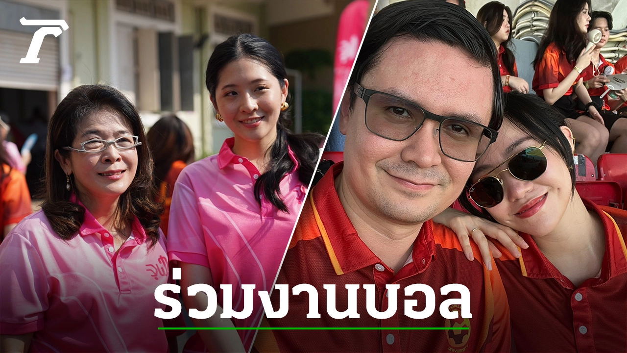 คุณหญิงสุดารัตน์ สวมเสื้อชมพู ควงน้อง “จินนี่” เชียร์ฟุตบอลจุฬาฯ-ธรรมศาสตร์ ครั้งที่ 75 แฟนคลับแห่ขอถ่ายภาพ ด้าน “โรม” ควง ภรรยา สวมเสื้อแดงส้ม ระบุ “We are TU”