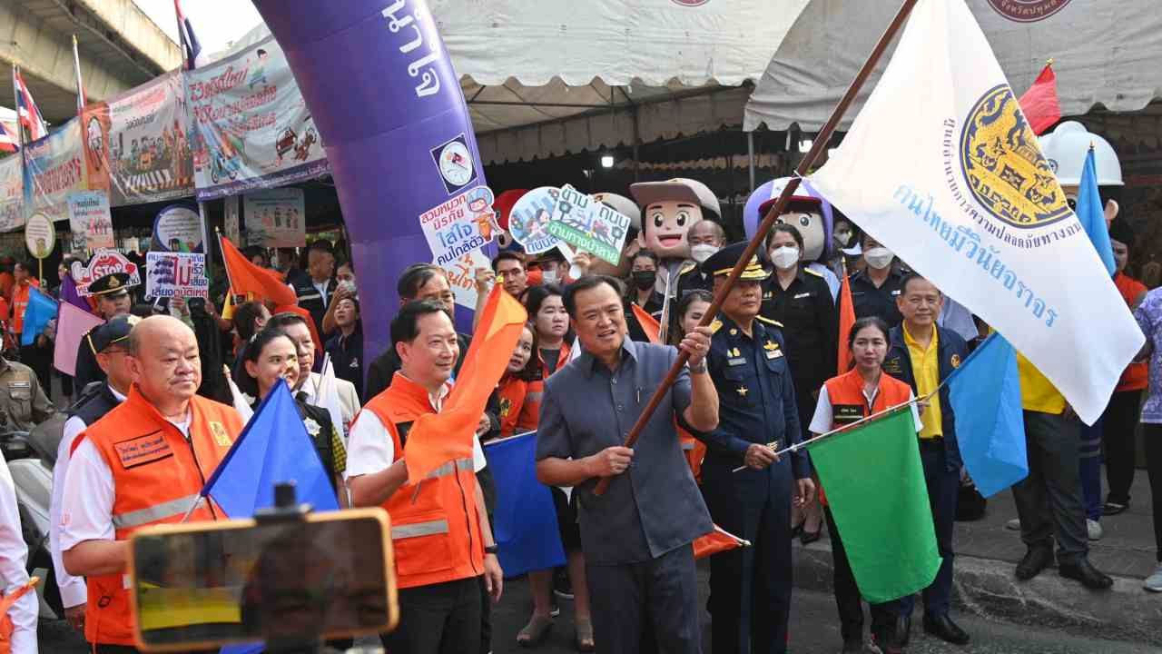 นายภาสกร บุญญลักษม์ ผู้ว่าราชการจังหวัดปทุมธานี กล่าวว่า จังหวัดปทุมธานี เป็นจังหวัดในเขตพื้นที่ปริมณฑล ซึ่งเป็นเส้นทางผ่านที่จะเดินทางสู่ภาคต่างๆ ของประเทศไทย ทั้งภาคเหนือ ภาคตะวันออกเฉียงเหนือ และภาคกลางตอนบน จึงมีความคับคั่งของความจราจรอย่างมาก โดยเฉพาะในช่วงเทศกาลสงกรานต์ ซึ่งเป็นเทศกาลที่มีการเดินทางกลับภูมิลำเนาของประชาชนและนักท่องเที่ยวจำนวนมาก ในการดำเนินการป้องกันและแก้ไขอุบัติเหตุทางถนนของจังหวัดปทุมธานีได้มีการบูรณาการทำงานทุกภาคส่วนและได้กำหนดมาตรการไว้ 5 ด้าน 1) ด้านการบริหารจัดการ 2) ด้านการลดปัจจัยเสี่ยงทางถนนและสภาพแวดล้อม 3) ด้านการลดปัจจัยเสี่ยงด้านยานพาหนะ 4) ด้านผู้ใช้รถใช้ถนนอย่างปลอดภัย และ 5) ด้านการช่วยเหลือหลังเกิดอุบัติเหตุ โดยเน้นการมีส่วนร่วมของทุกภาคส่วนในลักษณะยึดพื้นที่เป็นตัวตั้ง เพื่อควบคุมและลดปัจจัยเสี่ยงการเกิดอุบัติเหตุทางถนน ทั้งคน ถนน ยานพาหนะ และสิ่งแวดล้อม ให้เหลือน้อยที่สุด และเพื่อให้เกิดความปลอดภัยในการเดินทางในทุกมิติ จังหวัดปทุมธานีจัดให้มีจุดตรวจหลัก 16 แห่ง ทั้ง 7 อำเภอ มีด่านชุมชน 51 แห่ง เพื่อดูแลความปลอดภัยของพี่น้องประชาชนในการใช้รถใช้ถนน