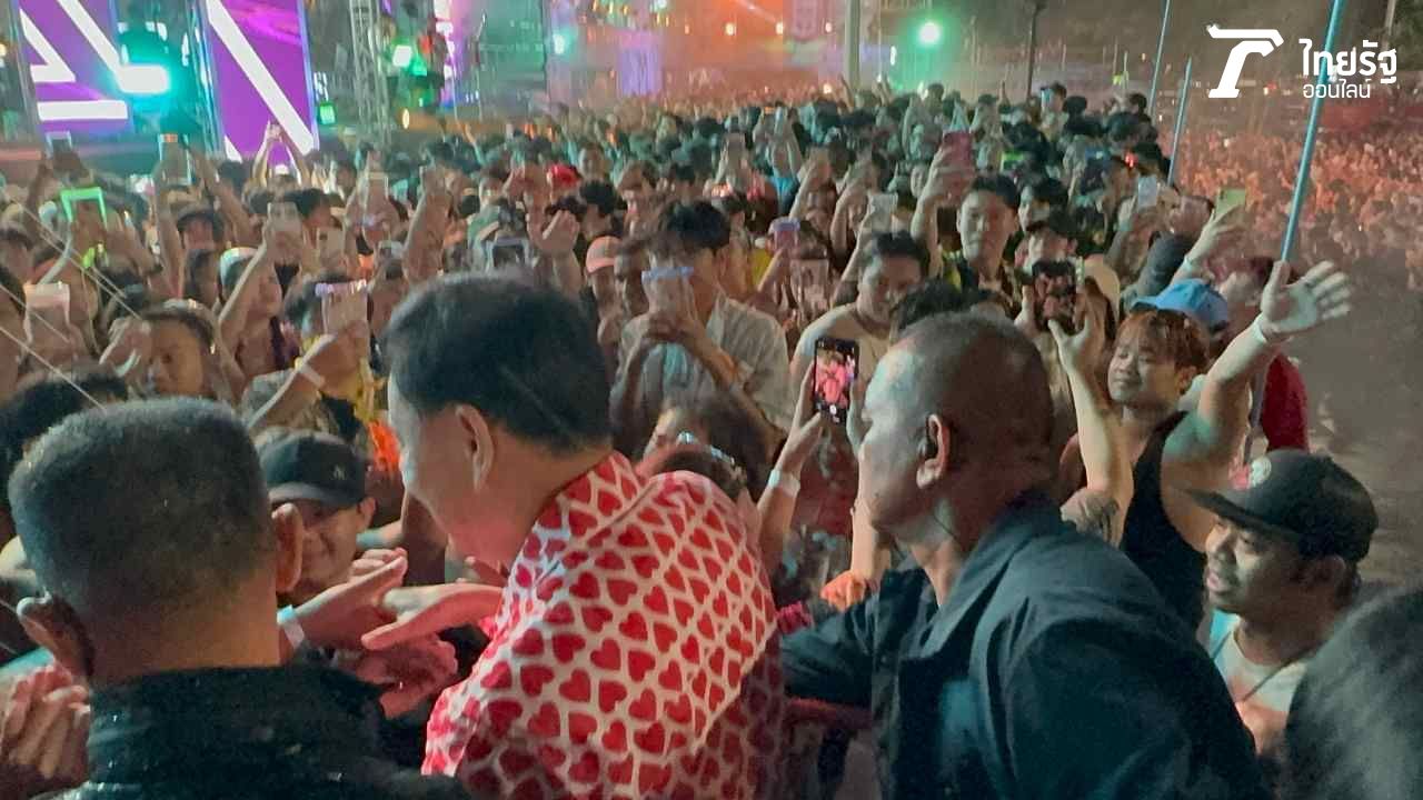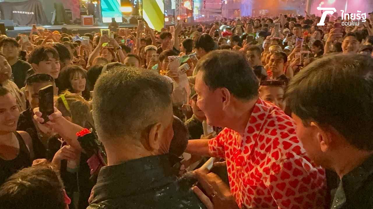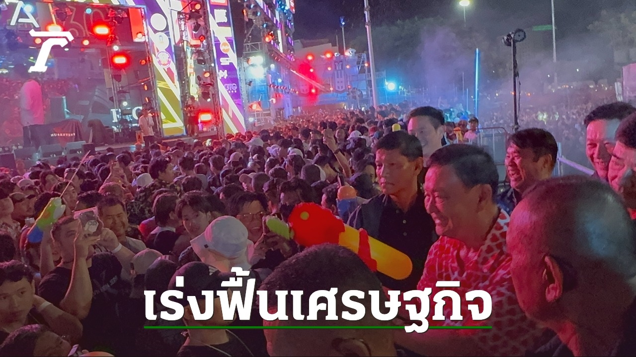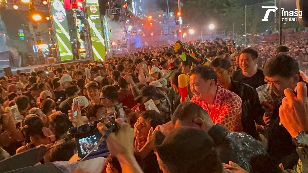 ทันทีที่นายทักษิณขึ้นบนเวที ได้รับเสียงกรี๊ดจากบรรดาวัยรุ่นนักท่องเที่ยวที่มาเล่นน้ำสงกรานต์ที่หน้าบริเวณห้างสรรพสินค้าเมญ่า ซึ่งมีผู้ที่ขอถ่ายรูปร่วมกับนายทักษิณเป็นระยะ ซึ่งในบางช่วงนายทักษิณ ได้ หยิบปืนฉีดน้ำขนาดเล็ก ร่วมเล่นน้ำกับเยาวชนด้วย