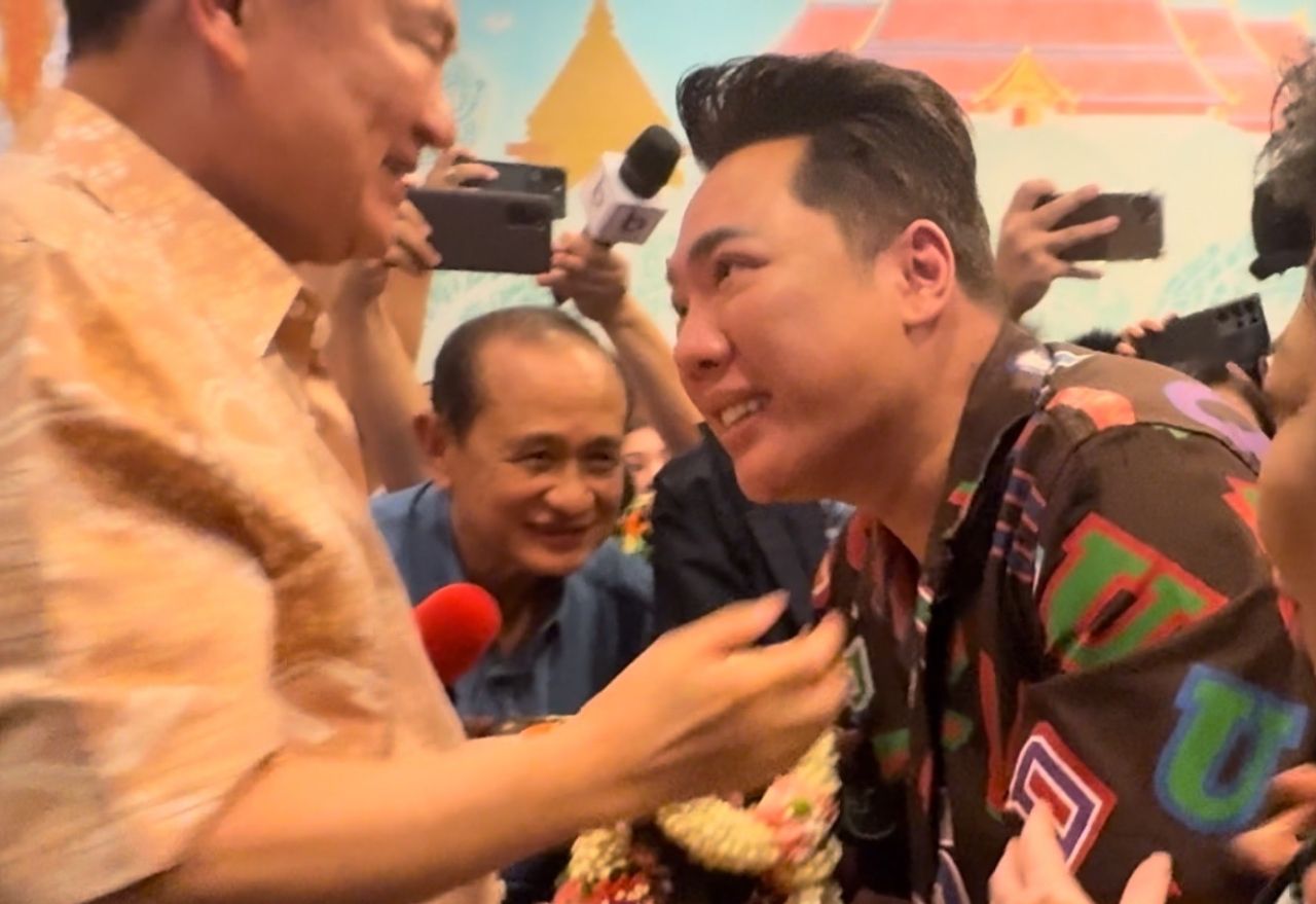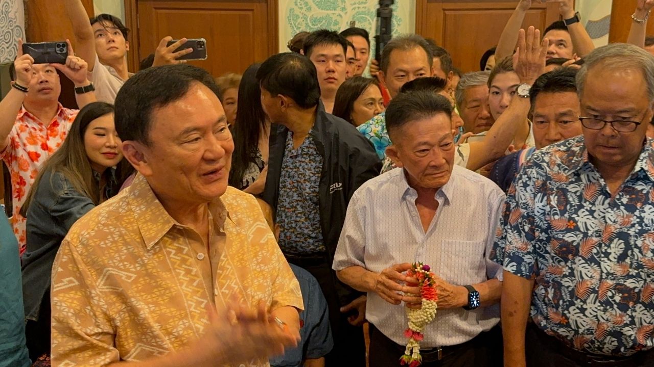 ต่อมาเวลา 15.55 น. นายทักษิณ ได้เดินเข้ามาในห้องพบปะกับรัฐมนตรีและ สส. โดย นายทักษิณ เอ่ยปากว่ามากันล้นหลาม จากนั้นได้ให้รัฐมนตรีของพรรคเพื่อไทยและบุคคลใกล้ชิดนำพวงมาลัยไปขอพร โดยหลังรับพรหลายคนก็เข้าโผกอด นายทักษิณ ด้วยความดีใจ