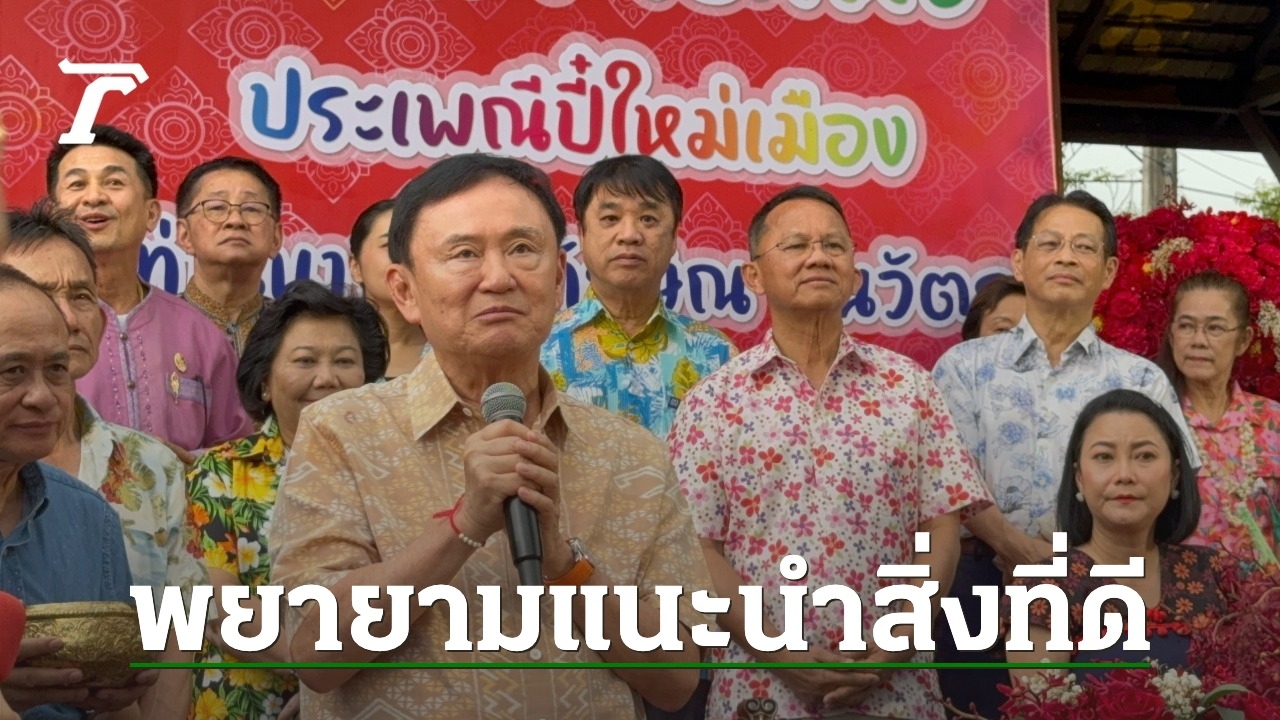 ขณะเดียวกัน นายทักษิณ ยังได้กล่าวขอบคุณนักการเมืองท้องถิ่นทุกคนที่มาร่วม และบอกด้วยว่าดีใจ เพราะไม่ได้พูดภาษาเหนือนาน วันนี้เลยพูดไม่ค่อยเป็น แต่ขอให้ทุกคนที่ตั้งใจมา ทั้งคนที่รักและเคารพ วันนี้ได้กลับมาบ้านเกิดเมืองนอน ได้มีโอกาสมาอวยพร ตัวเองก็แก่แล้ว อายุ 75 ปี คนส่วนใหญ่ในนี้อายุน้อยกว่า มีไม่กี่คนที่อายุมากกว่า จึงขออวยพรให้ทุกคนมีสุขภาพแข็งแรง มีจิตใจในการต่อสู้ชีวิต และขอให้ทุกอย่างผ่านพ้นไปได้ด้วยดี ขอให้ทุกคนมีโชคมีชัย ซึ่งตนก็มั่นใจว่ารัฐบาลและตนก็จะพยายามแนะนำสิ่งที่ดี แก้ปัญหาให้บ้านเมือง เชื่อว่านายกรัฐมนตรีและคณะรัฐมนตรีจะแก้ปัญหาให้พี่น้องประชาชนได้อย่างรวดเร็วที่สุดในปีนี้ อีกทั้งเชื่อว่าปีหน้าจะเป็นปีที่รุ่งเรือง ปีนี้อาจจะเหนื่อยหน่อยเพราะรัฐบาลใช้งบไม่ได้ แต่คิดว่าหลังจาก 3 ปีนี้เป็นต้นไปทุกอย่างจะดีขึ้น