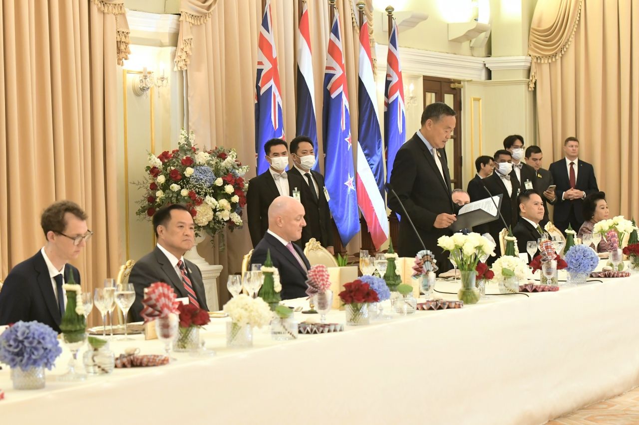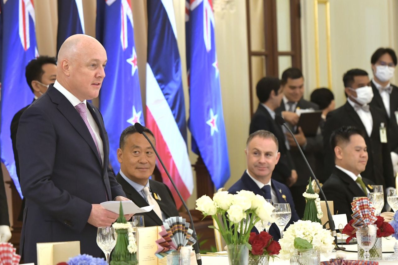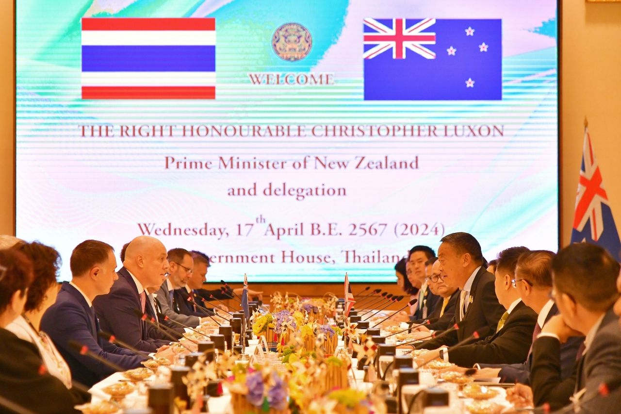 วันที่ 17 เมษายน 2567 ภายหลัง นายเศรษฐา ทวีสิน นายกรัฐมนตรีและรัฐมนตรีว่าการกระทรวงการคลัง ให้การต้อนรับ นายคริสโตเฟอร์ ลักซอน นายกรัฐมนตรีนิวซีแลนด์ ในโอกาสการเยือนประเทศไทยอย่างเป็นทางการในฐานะแขกของรัฐบาล และร่วมตรวจแถวกองทหารเกียรติยศ ณ บริเวณสนามหญ้าหน้าตึกไทยคู่ฟ้า ทำเนียบรัฐบาล จากนั้นเชิญไปยังห้องสีม่วง เพื่อแนะนำคณะรัฐมนตรี แล้วจึงเชิญไปยังห้องสีงาช้างด้านนอก เพื่อลงนามในสมุดเยี่ยมและชมของที่ระลึกที่ทั้ง 2 ฝ่ายมอบให้แก่กัน ก่อนจะหารือกลุ่มเล็ก ณ ห้องสีงาช้างด้านใน โดยภายหลังเสร็จสิ้นการหารือ นายชัย วัชรงค์ โฆษกประจำสำนักนายกรัฐมนตรี เปิดเผยสาระสำคัญ ดังนี้