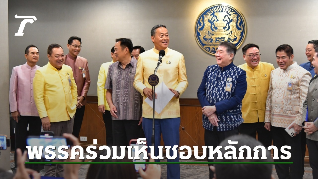 นายกฯ ยกทัพแกนนำพรรคร่วมรัฐบาล แถลงมติ ครม. เห็นชอบหลักการดิจิทัลวอลเล็ต 10,000 บาท พร้อมส่งให้กฤษฎีกาตีความปมเงิน ธ.ก.ส. “จุลพันธ์” ย้ำ ลงทะเบียนไตรมาส 3 แจกเงินไตรมาส 4 “เผ่าภูมิ” ยัน รอบคอบ ทำตามกฎหมายทุกอย่าง