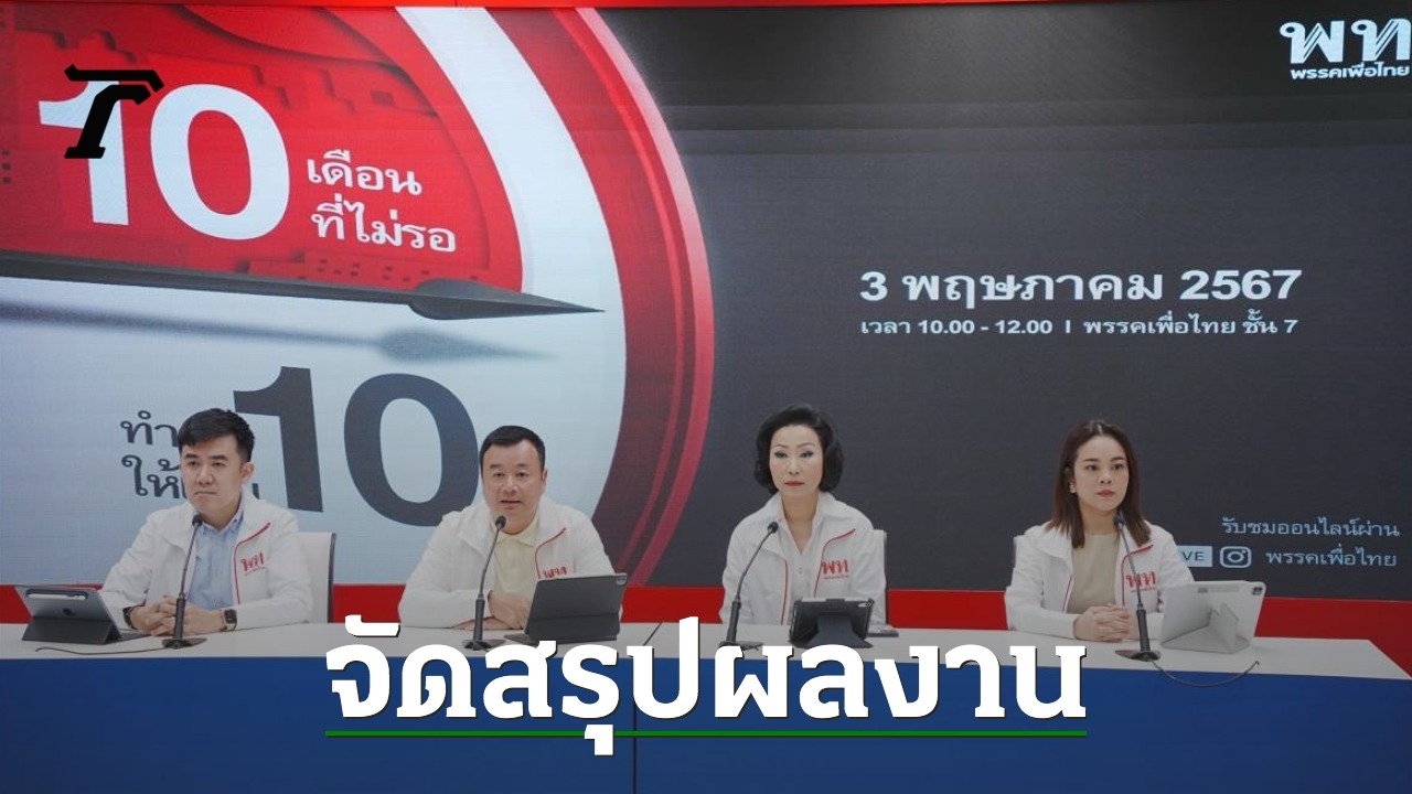 วันที่ 29 เม.ย. ที่พรรคเพื่อไทย นำโดย นายสรวงศ์ เทียนทอง สส.สระแก้ว และเลขาธิการพรรคเพื่อไทย ทพญ.ศรีญาดา ปาลิมาพันธ์ สส.บัญชีรายชื่อ และรองเลขาธิการพรรค น.ส.ขัตติยา สวัสดิผล สส.บัญชีรายชื่อ และรองโฆษกพรรค นายชนินทร์ รุ่งธนเกียรติ สส.บัญชีรายชื่อ และรองโฆษกพรรค ร่วมแถลงข่าวเตรียมจัดงาน ‘10 เดือนที่ไม่รอ ทำต่อให้เต็ม 10’ ในวันศุกร์ที่ 3 พฤษภาคม 2567