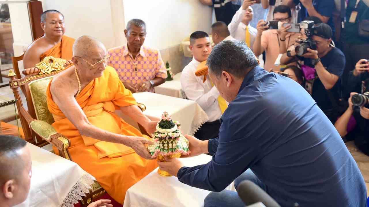 โดยนายกฯ สักการะหลวงพ่อโตวัดป่าเลไลยก์ พระคู่บ้านคู่เมืองสุพรรณฯ พร้อมถวายพวงมาลัย และผ้าห่มหลวงพ่อโต ก่อนกราบนมัสการพระธรรมพุทธิมงคล หรือหลวงพ่อสะอิ้ง ที่ปรึกษาเจ้าคณะภาค 14 เจ้าอาวาสวัดป่าเลไลยก์วรวิหาร ที่ปรึกษาเจ้าคณะจ.สุพรรณบุรี โดยนายกฯ ได้ถวายผ้าไตรพร้อมเครื่องไทยธรรม