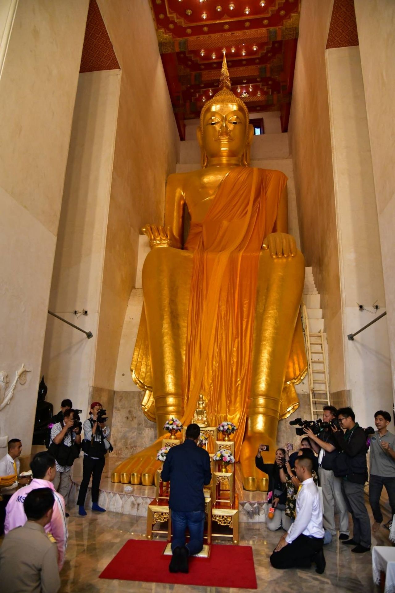 ต่อมา เวลา 14.50 น. นายกฯ พร้อมคณะ ได้สักการะพระพุทธปุษยคีรีศรีสุวรรณภูมิ (หลวงพ่ออู่ทอง) ที่วัดเขาทำเทียม ต.อู่ทอง อ.อู่ทอง จ.สุพรรณบุรี เมื่อมาถึงนายกฯ ได้ทักทายชาวบ้าน ซึ่งเป็นชาวไทยทรงดำ-ลาวเวียง-ลาวครั่ง ที่สวมชุดเรือธรรมพื้นถิ่นมาต้อนรับ