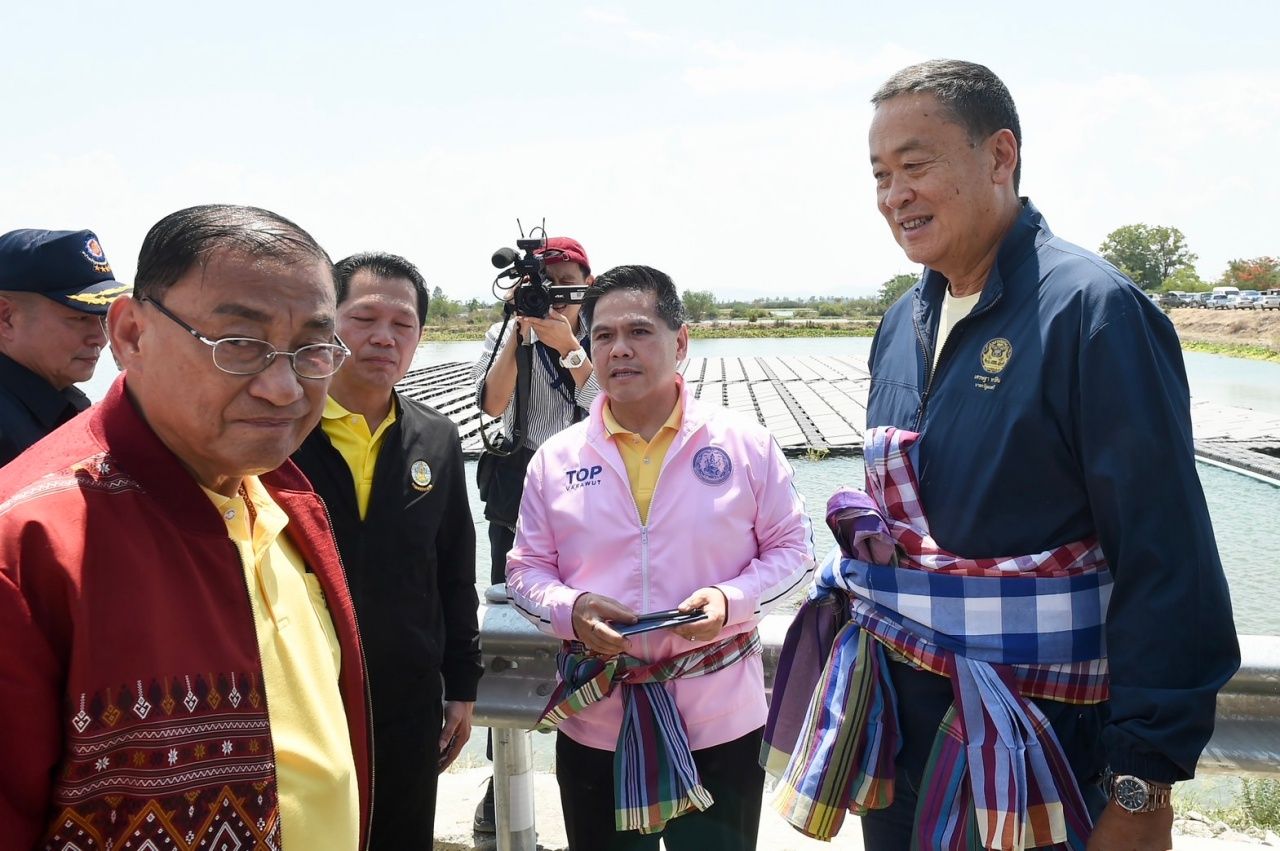 นายกฯ กล่าวว่า วันนี้ก็มาดูการบริหารจัดการน้ำที่นี่ ที่ทางคุณพ่อ นายบรรหาร ศิลปอาชา อดีตนายกฯ ทำไว้ดี เผื่อจะเอาไปทำที่จังหวัดอื่นได้บ้าง แต่ถึงแม้ว่าจะทำดีแล้ว ก็ยังต้องการความช่วยเหลืออยู่ดี เราก็ช่วยกับกรมชลประทานและทหารราบ พัฒนามาอย่างต่อเนื่อง