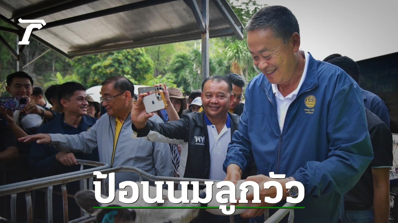นายกฯ เยี่ยมชมฟาร์มโคนม อารมณ์ดีป้อนนมลูกวัว ก่อนรับฟังปัญหาเกษตรกรผู้เลี้ยงโคนม พร้อมชิมกาแฟขี้ชะมด บอกอร่อย เพิ่มมูลค่าเกษตรกร แนะทำเชิงพาณิชย์
