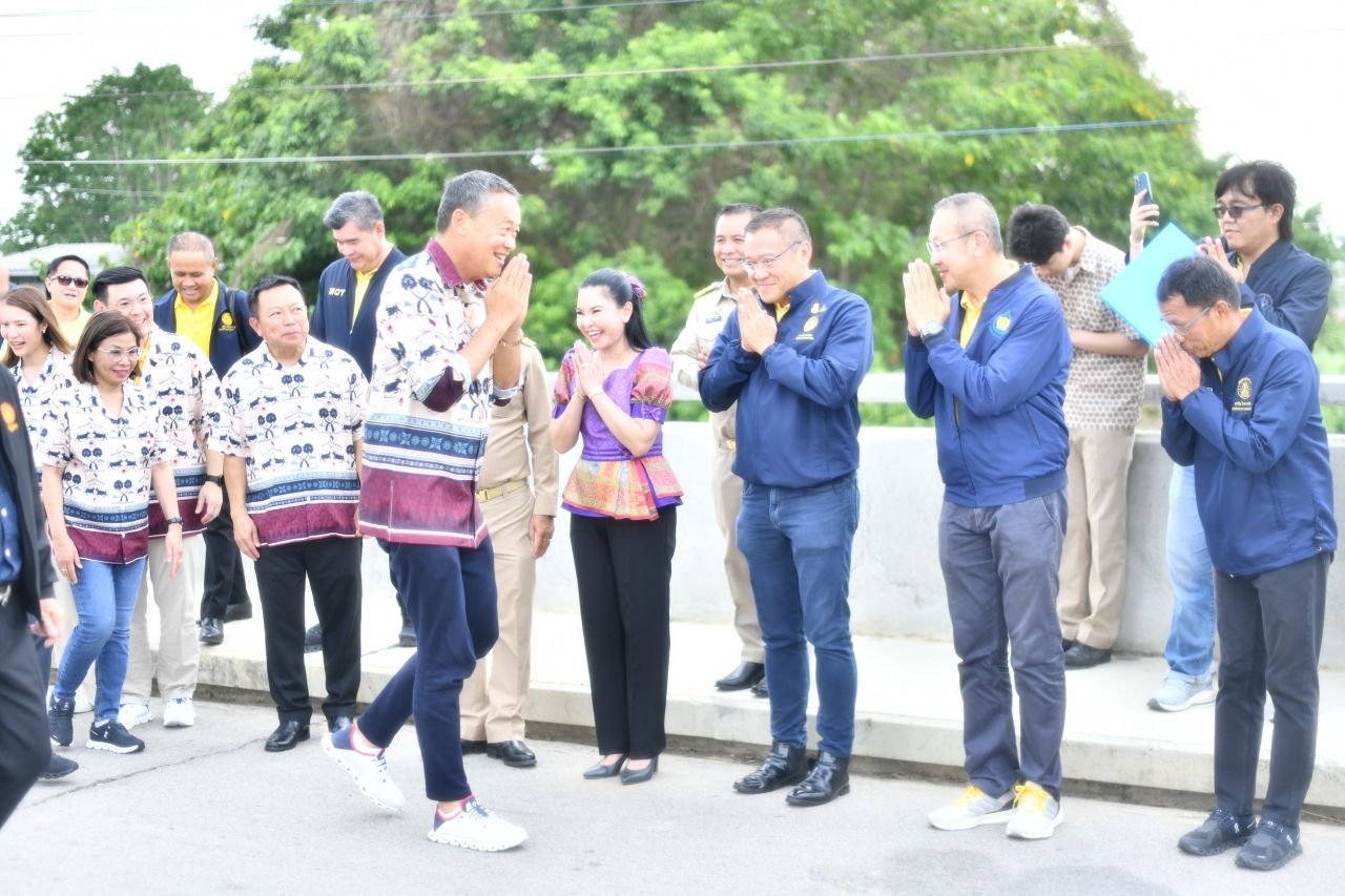 เมื่อเวลา 16.30 น. วันที่ 13 พฤษภาคม 2567 นายเศรษฐา ทวีสิน นายกรัฐมนตรี และคณะ ตรวจเยี่ยมความคืบหน้าก่อสร้างโครงการก่อสร้างระบบป้องกันน้ำท่วมพื้นที่ชุมชนบ้านลาด ที่บริเวณสะพานบ้านลาด ต.บ้านลาด อ.บ้านลาด จ.เพชรบุรี โดยมี นายพรรณรบ เตชะมงคลาภิวัฒน์ รองอธิบดีกรมโยธาธิการและผังเมือง รายงานความคืบหน้า และ จ.อ.อภิชาติ แก้วโกศล สส.เพชรบุรี เขต 3 พรรครวมไทยสร้างชาติ (รทสช.) ชี้แจงปัญหาน้ำท่วมในพื้นที่