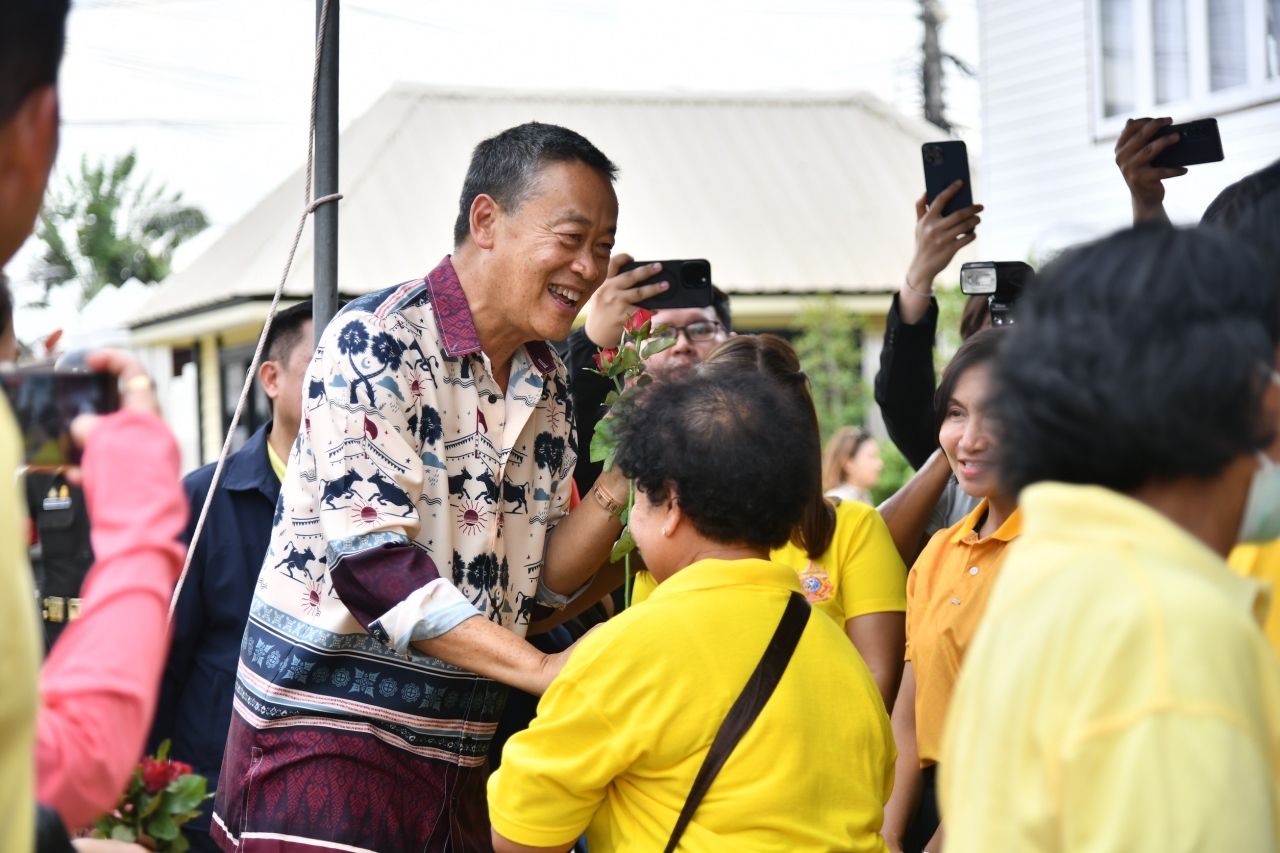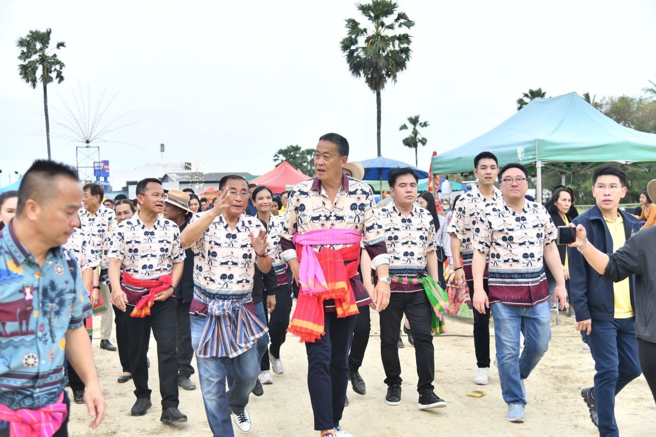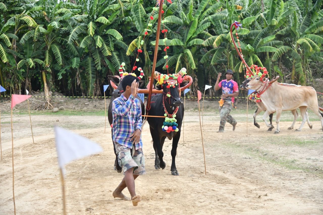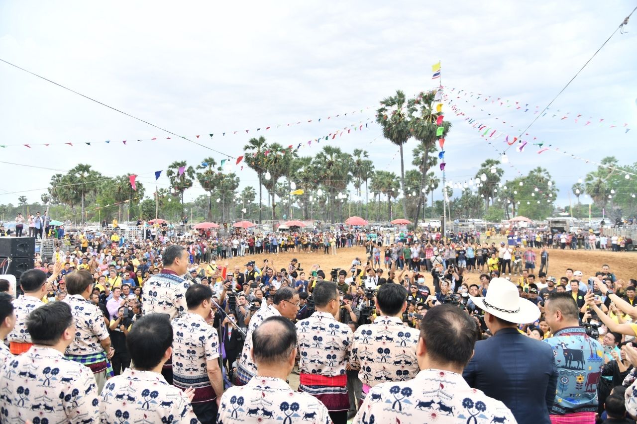 เมื่อนายกรัฐมนตรีเดินทางถึง ได้ทักทายประชาชนและอาสาสมัครสาธารณสุขประจำหมู่บ้าน (อสม.) ที่มารอต้อนรับ ก่อนจะเดินเข้าไปชมการประกวดวัวเทียมไถสวยงาม พร้อมกล่าวว่า ขอให้อนุรักษ์และรักษาประเพณีนี้ไว้ อย่าให้ขาดหาย พร้อมชื่นชมคณะจัดงานที่ยังรักษาประเพณีไว้ และชมการนวดข้าวแบบโบราณ จากนั้นจึงเดินไปยังลานการแสดงวัวลาน เพื่อชมการแข่งขันกีฬาวัวลานพื้นบ้าน พร้อมกล่าวว่า วันนี้เป็นหนึ่งในกิจกรรมที่ตนได้มาเยี่ยม จ.เพชรบุรี เข้าใจว่าเป็นไฮไลต์ของวันนี้ ดูแล้วตื่นเต้นที่สุด เพราะจริงๆ แล้วไม่เคยทราบว่ามีประเพณีนี้มาก่อน เป็นสิ่งที่น่าชื่นชม น่าสนับสนุนให้มีการแข่งขันวัวลานต่อไปอย่างถูกต้องตามกฎหมาย หากดูสีหน้าจากรัฐมนตรีหลายท่านอายุเยอะแล้ว ถามว่าเคยเห็นหรือเปล่ากีฬาประเภทนี้ ก็ไม่เคยเห็น มีแต่ นายเสริมศักดิ์ รู้เรื่อง และอธิบายให้เราฟัง ก็ตื่นเต้นดีจริงๆ